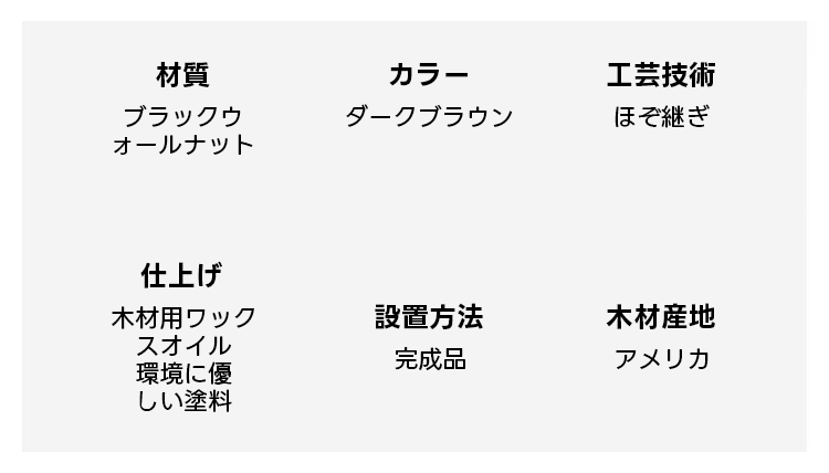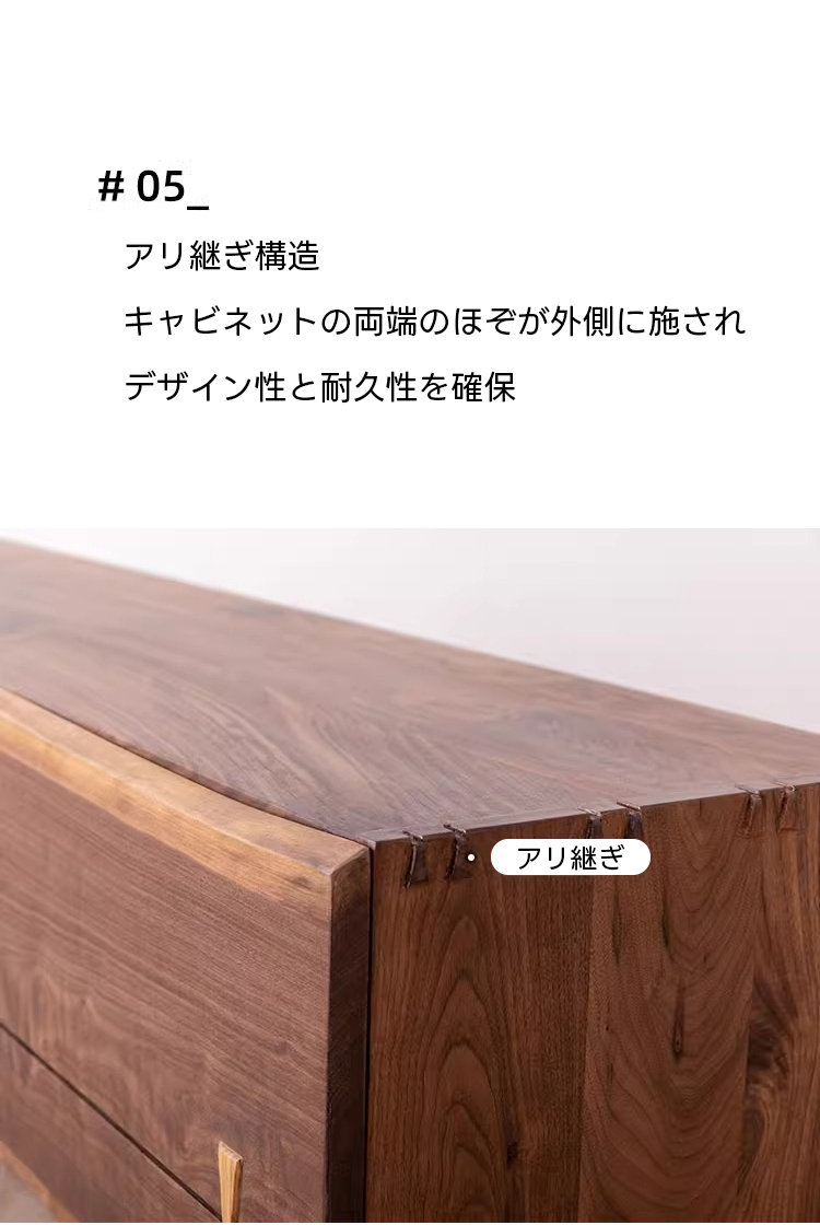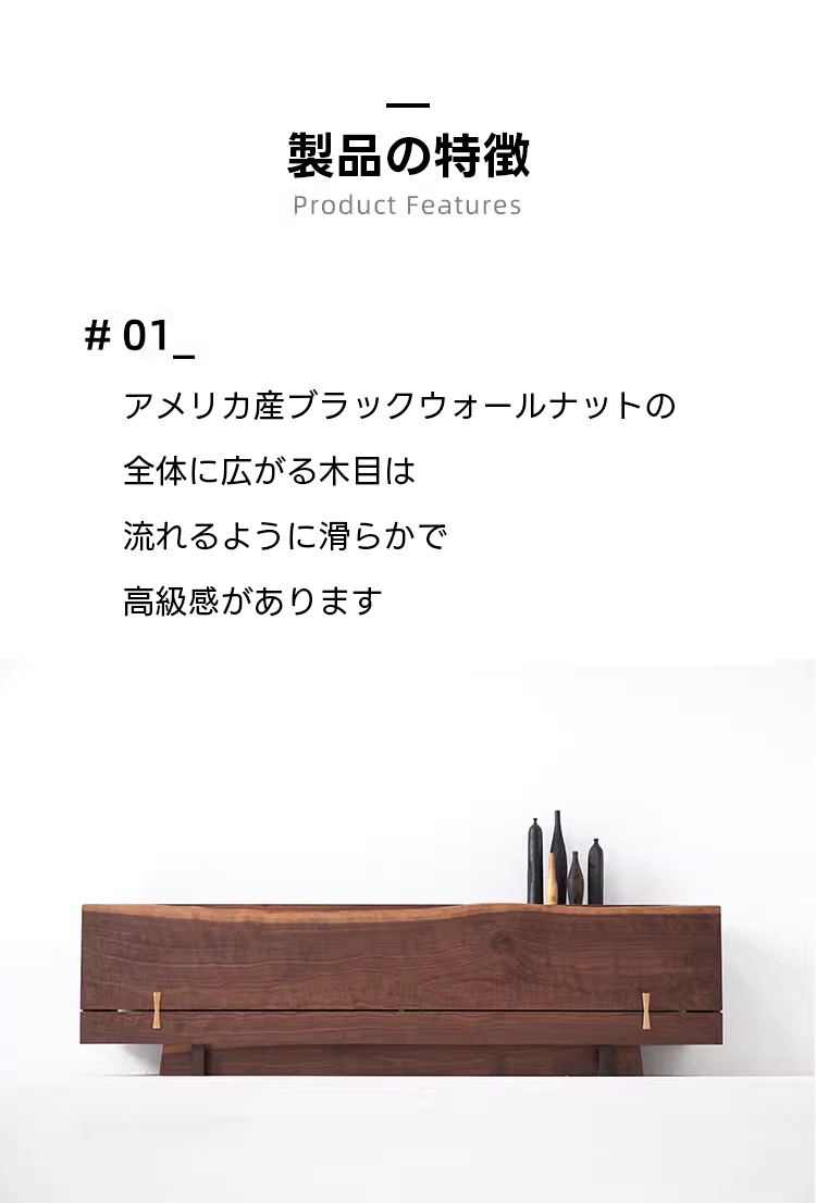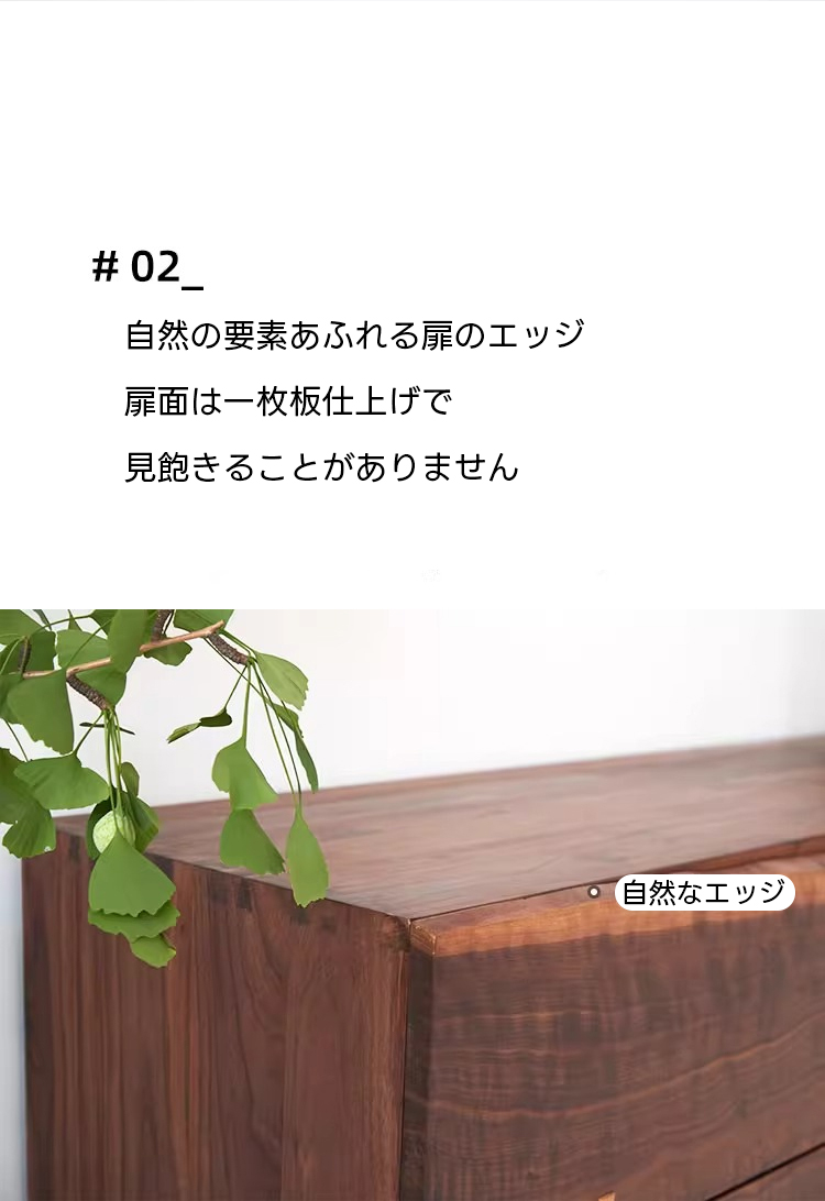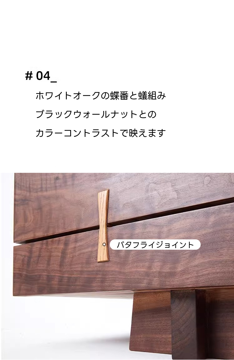 - 【優れた素材とデザイン】ブラックウォールナットの一枚板を使用し、ホワイトオークの蝶番と蟻組みがコントラストを引き立てます。自然なエッジが施された扉面は、見飽きることのないデザインです。