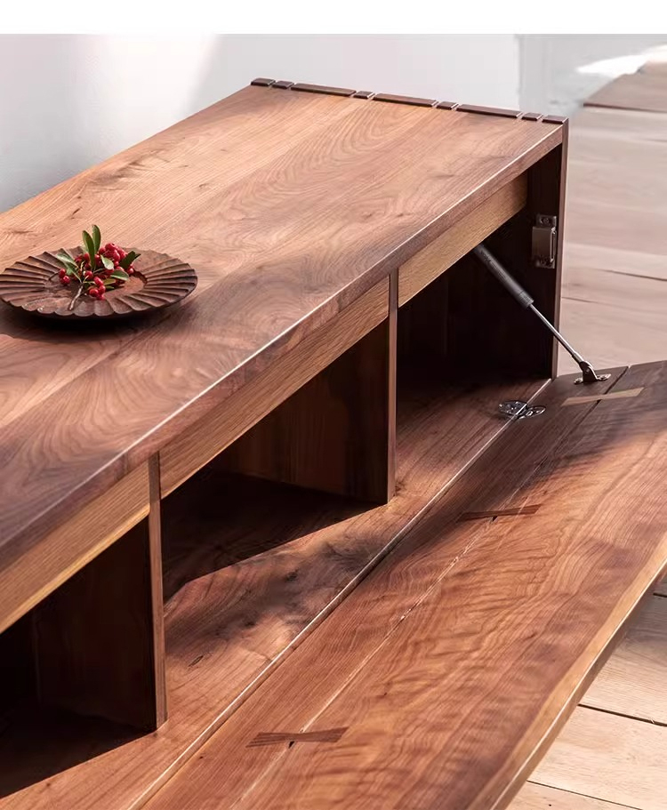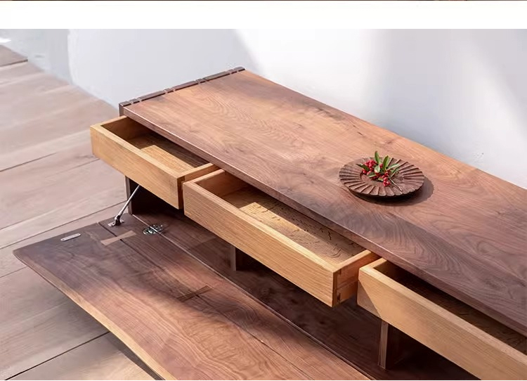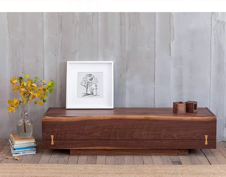 - 【高級感あふれるデザイン】アメリカ産ブラックウォールナットを使用した天然一枚板テレビ台は、滑らかな木目と深いダークブラウンが特徴です。自然の美しさをそのまま活かし、リビングに落ち着いた雰囲気をもたらします。