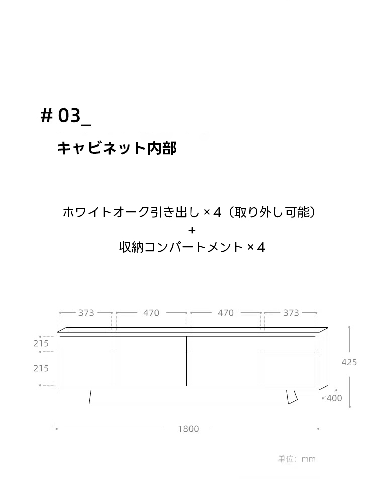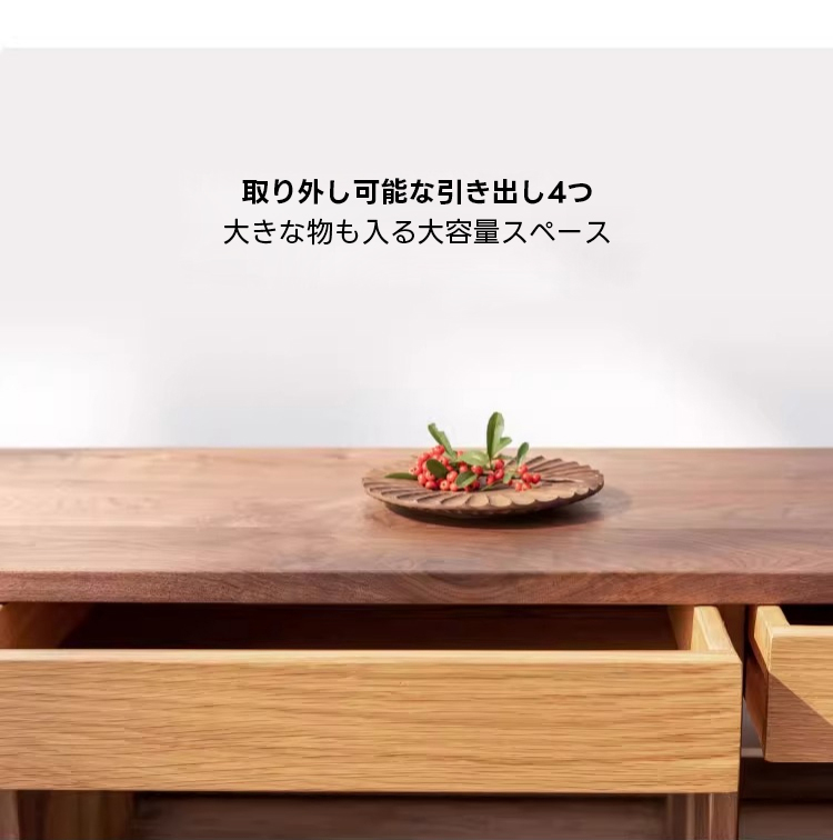 - 【大容量収納スペース】キャビネット内部には、取り外し可能なホワイトオークの引き出しが4つあり、収納力抜群です。リビングの整理整頓に役立ち、見た目もすっきりしています。