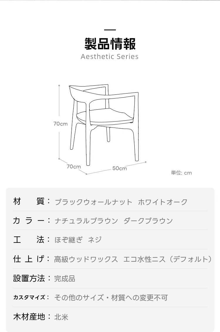 - 【高品質な素材とデザイン】:北米産のホワイトオークとアメリカ産ブラックウォールナットを使用し、自然の木目を活かした美しい仕上がり。ナチュラルブラウンとダークブラウンの2色展開で、高級感あふれる選択肢を提供します。