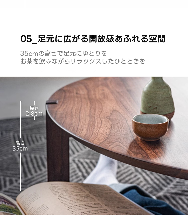 - 【多用途なデザイン】カップルやファミリー、一人暮らしの方にも最適で、リビングテーブルやローテーブルとして幅広く活用できます。自然な温もりと和の雰囲気をリビングにもたらします。