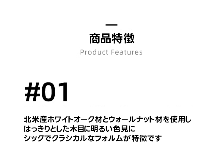 - 【高品質な素材とデザイン】北米産のホワイトオーク材とウォールナット材を使用し、手磨き仕上げで木材の自然な美しさを引き立てています。ほぞ継ぎ構造により、釘を使わずに頑丈な作りを実現しました。