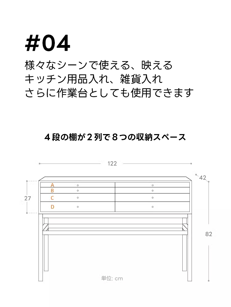 - 【多用途な収納スペース】このホワイトアッシュ製サイドテーブルは、4段の棚が2列で合計8つの収納スペースを提供します。キッチン用品やオフィス用品、雑貨などを整理整頓できるため、家庭やオフィスでの使用に最適です。