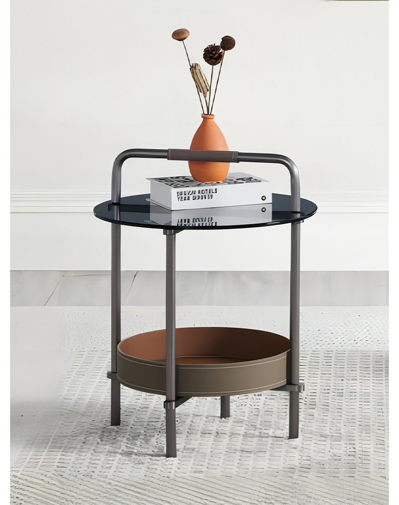 - 【多機能なエッジラインラウンドテーブル】このテーブルは、ラグジュアリーなデザインと高品質な素材を組み合わせた製品です。グレーのステンレスフレームとサドルレザーが洗練された印象を与え、強化ガラスの天板が安全性と耐久性を提供します。リビングやダイニング、寝室での使用に最適です。