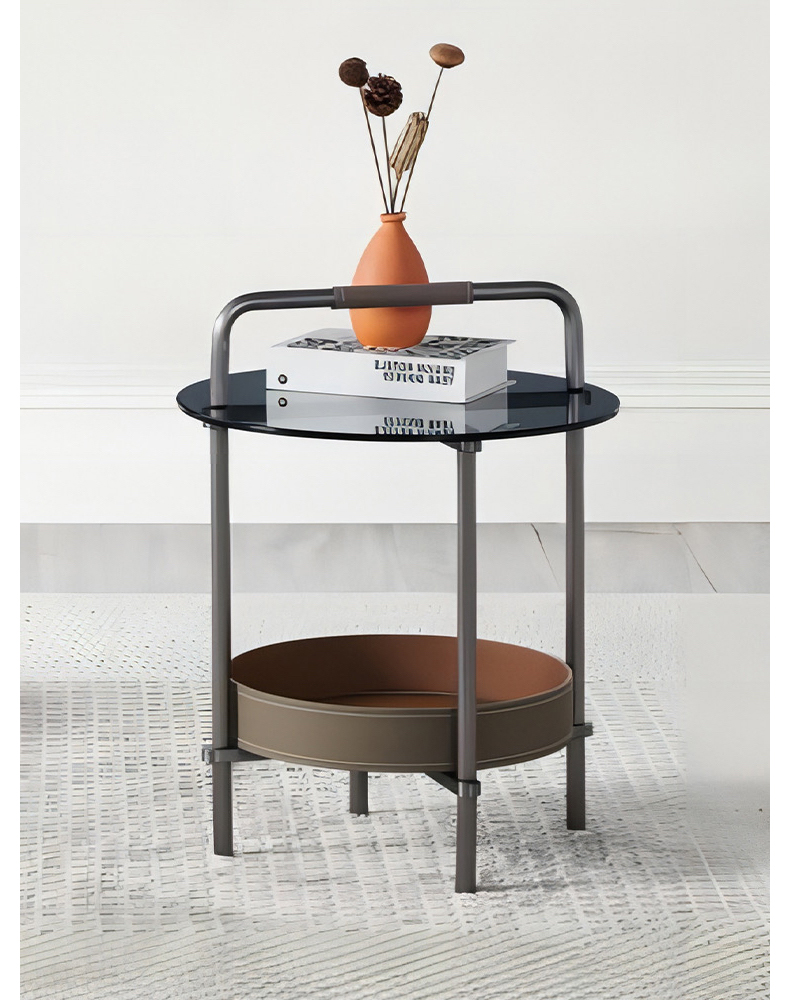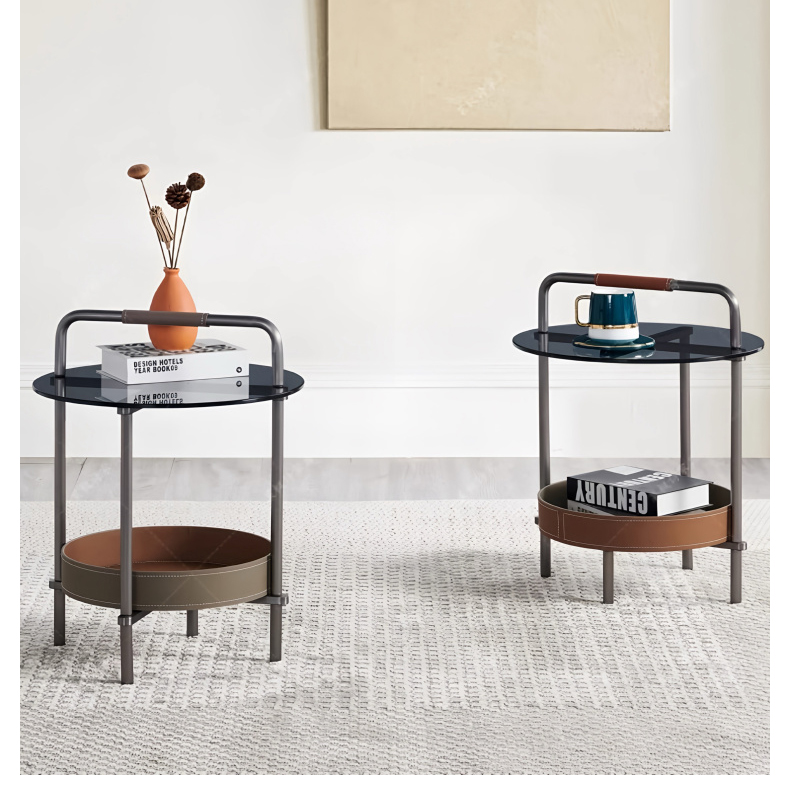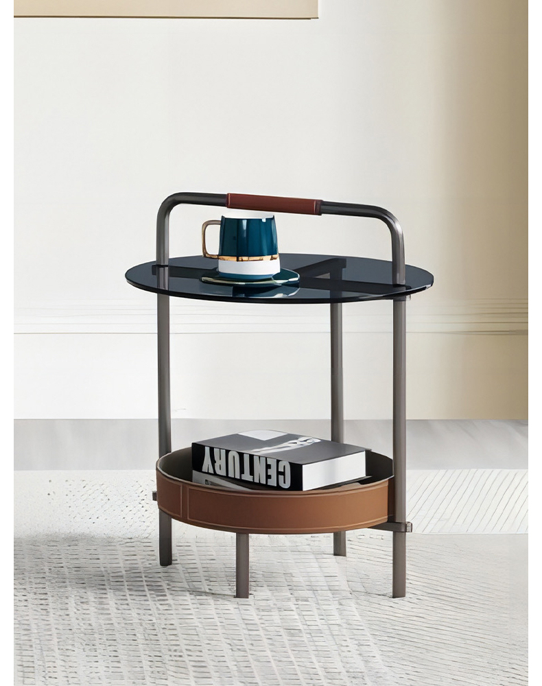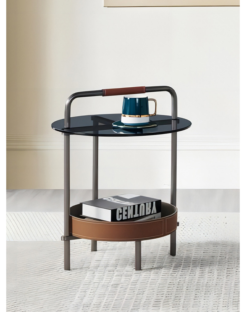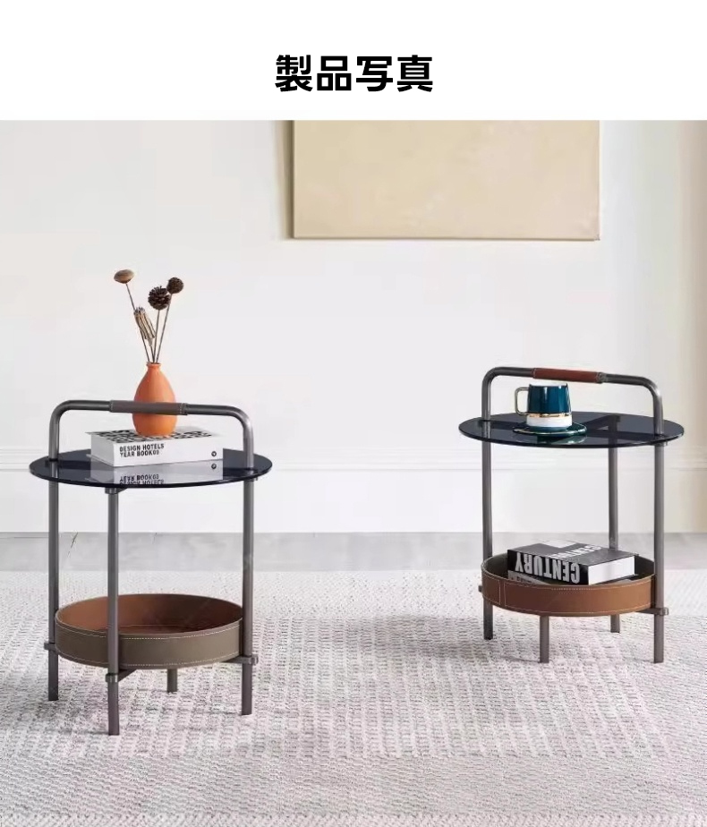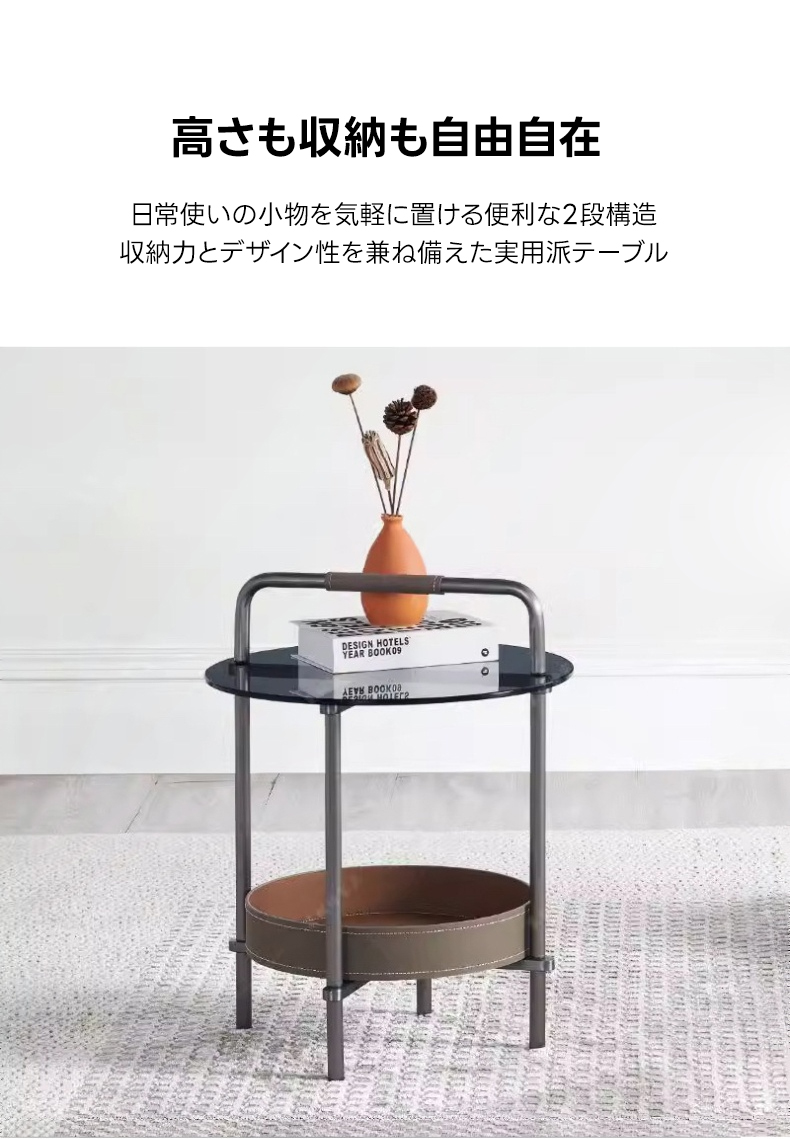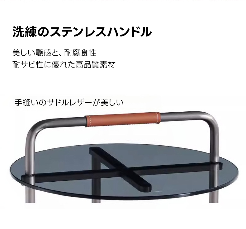 - 【高品質な素材とデザイン】グレーのステンレスフレームと手縫いのサドルレザーが高級感を演出。天板には強化ガラスを使用しており、割れにくく安心して日常使いが可能です。耐久性と美しさを兼ね備えたデザインです。