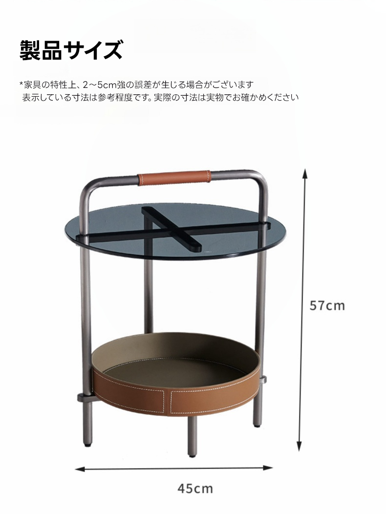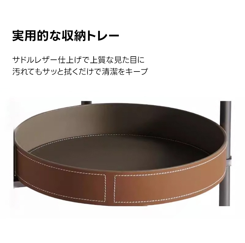 - 【コンパクトで機能的】高さ57cm、直径45cmのコンパクトサイズで、置き場所を選ばず自由に配置可能です。2段構造の収納トレーは、日常使いの小物を整理するのに便利で、清潔感を保ちやすいデザインです。