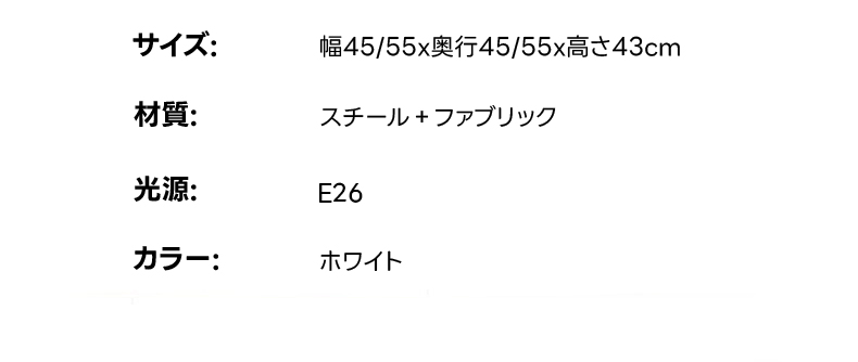 - 【幅広い適用性】幅55cm、奥行55cm、高さ43cmのサイズで、ダイニングや寝室、ベッドルームに最適です。一人暮らしからファミリーまで幅広くお使いいただけます。最大45WのE27ソケットを使用し、8〜12㎡の空間に適しています。