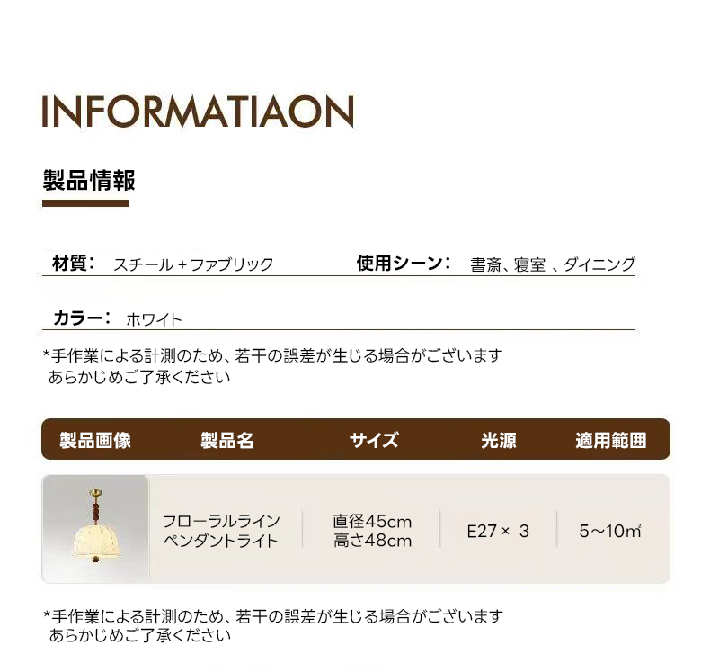 - 【高品質な素材】ホワイトのファブリックシェードは、優雅なフローラル模様が施されており、柔らかく温かみのある光を提供します。鉄とファブリックの組み合わせにより、耐久性と美しさを兼ね備えています。