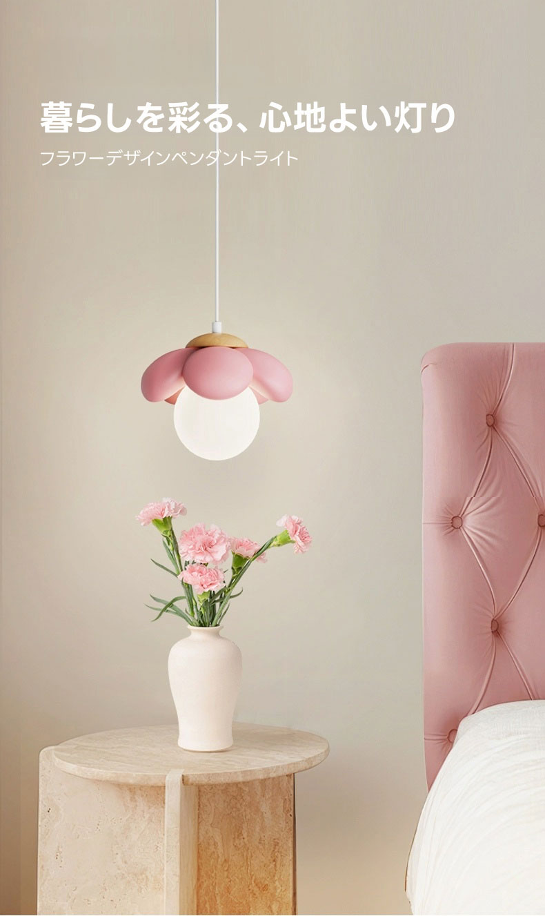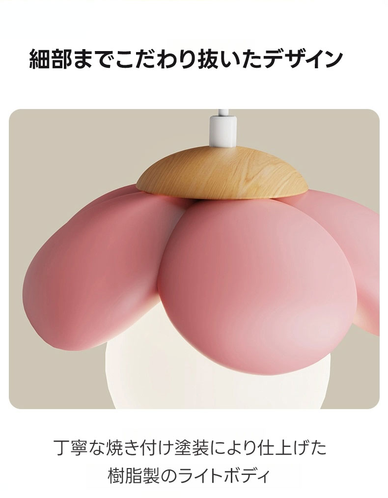 - 【優雅なデザインと機能性】このペンダントライトは、花びらのようなシェードが特徴で、どんなインテリアにも華やかさをプラスします。パステルピンクの樹脂製シェードが柔らかい光を提供し、心地よい空間を演出します。