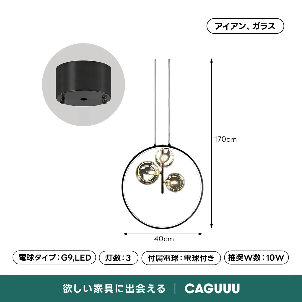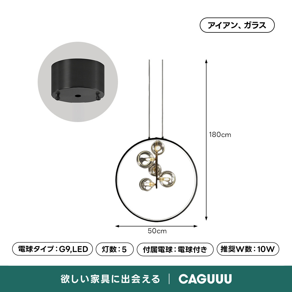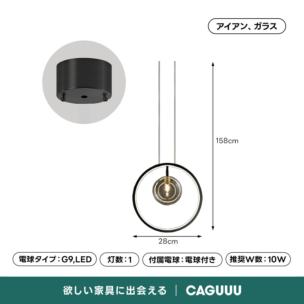 - 【洗練されたデザインと機能性】サークルプラネットデザインペンダントライトは、シンプルモダンなデザインと機能性を兼ね備えています。ブラックの鉄製フレームと透明なガラスシェードが調和し、どんなインテリアにもマッチします。
