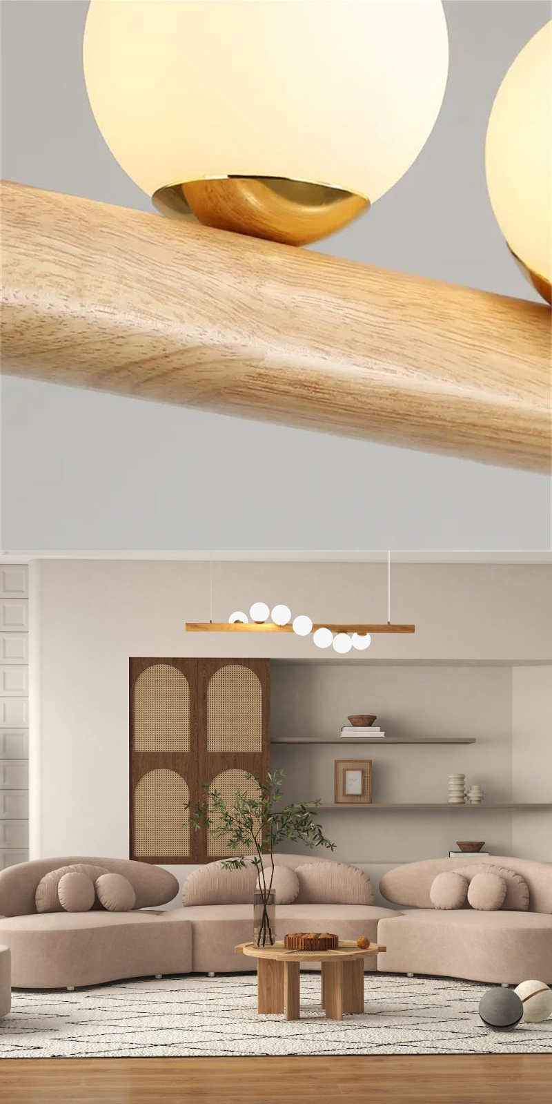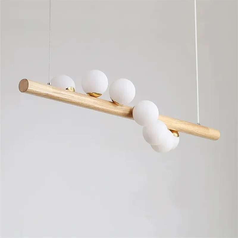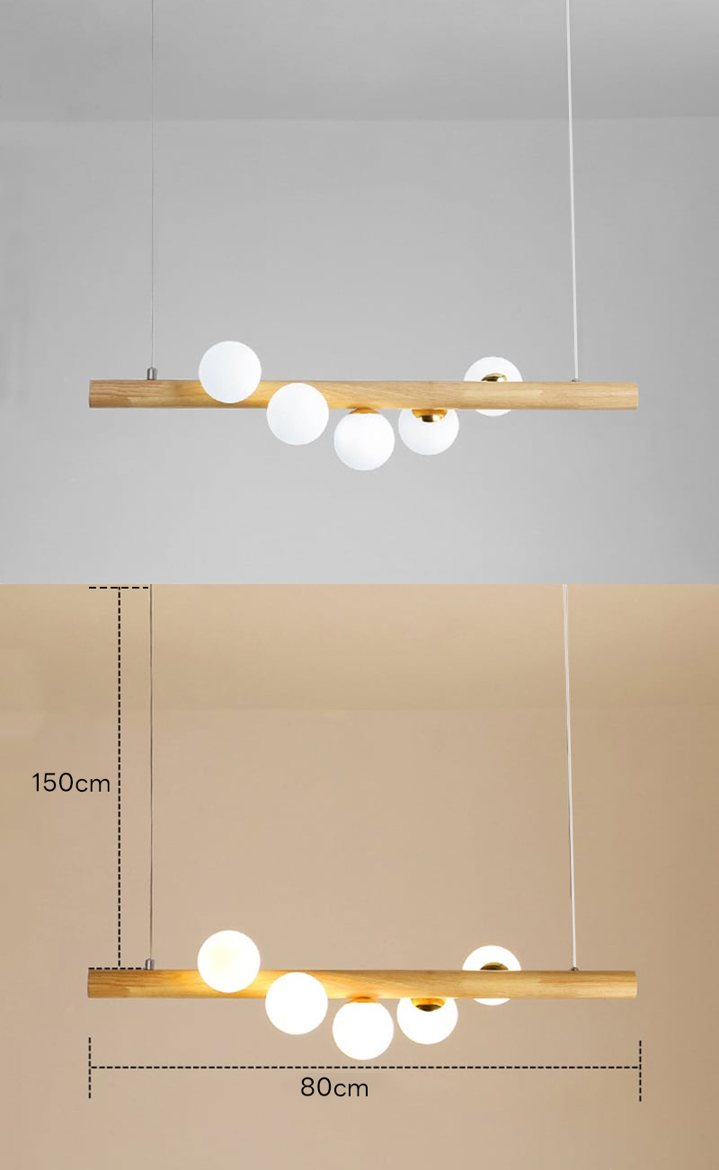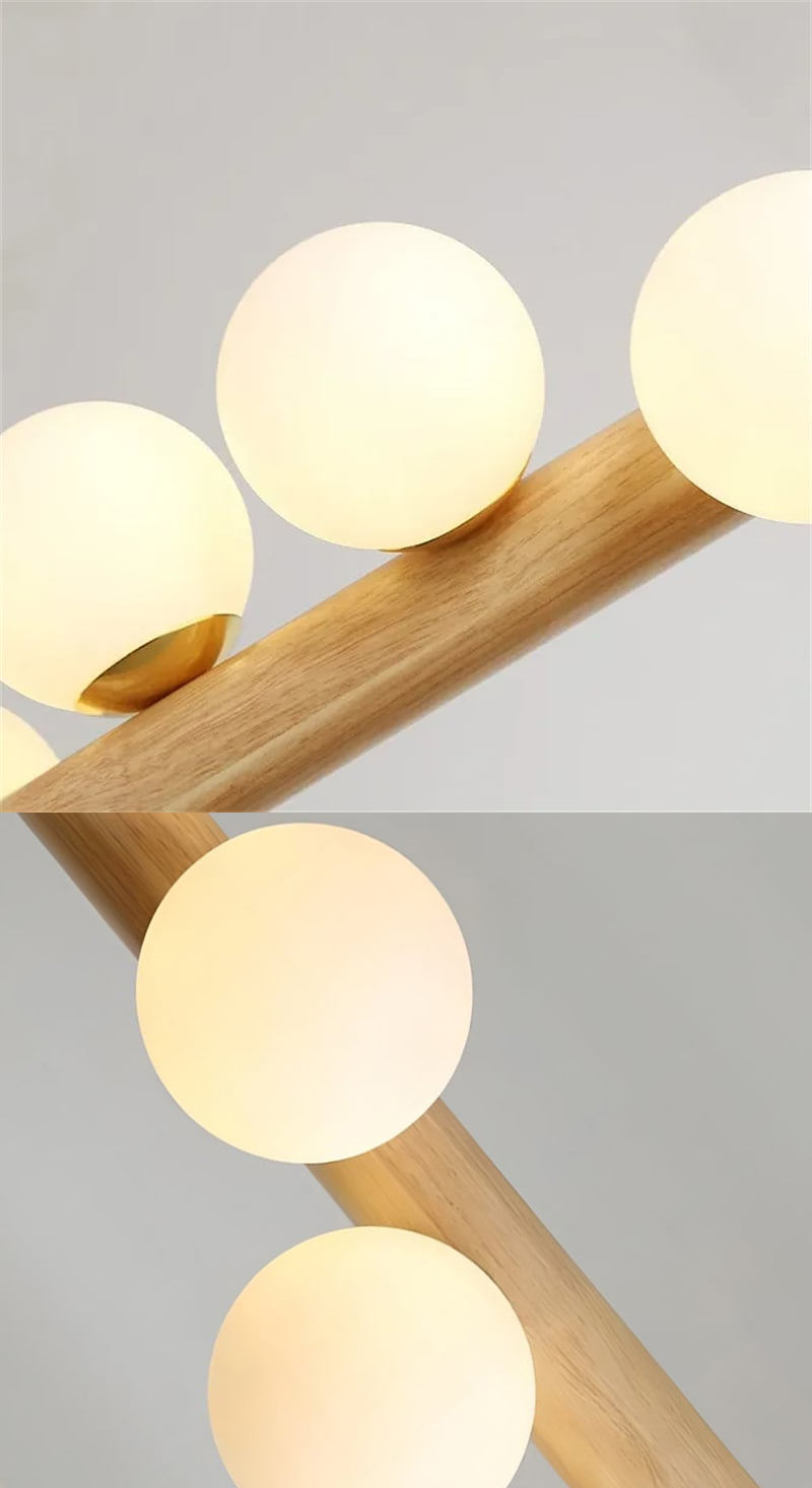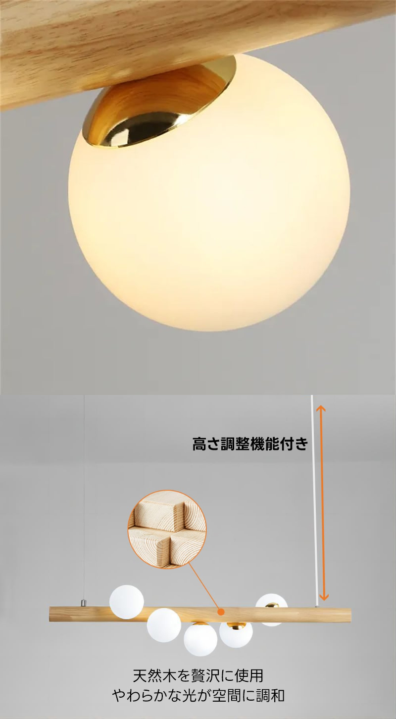 - 【高品質な材料とデザイン】天然木と金属、ガラスを組み合わせた高品質な素材を使用し、不規則に配置された球形のガラスシェードが特徴。高さ調整機能が付いており、設置する場所に合わせて最適な高さに調整可能です。
