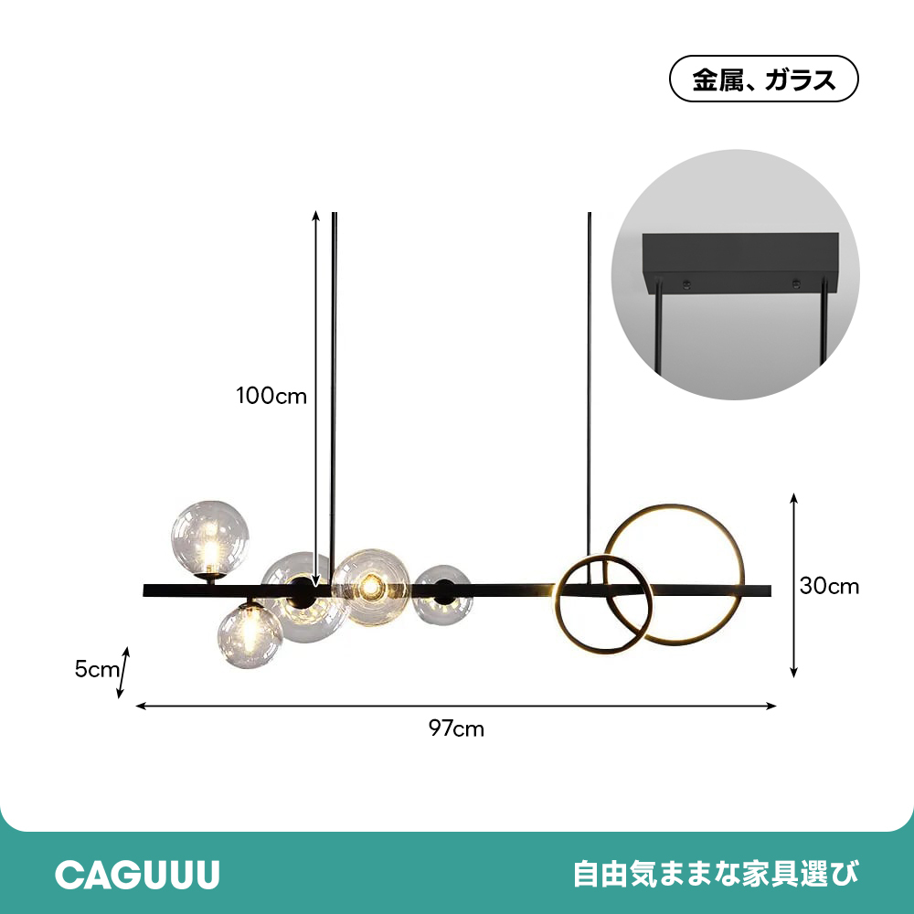 - 【シンプルモダンなデザイン】このペンダントライトは、シンプルでありながらモダンなデザインが特徴です。ブラックの金属とクリアガラスの組み合わせが、どんな空間にも洗練された雰囲気を演出します。5灯の間接照明が、柔らかく暖かい光を放ち、空間を優しく照らします。