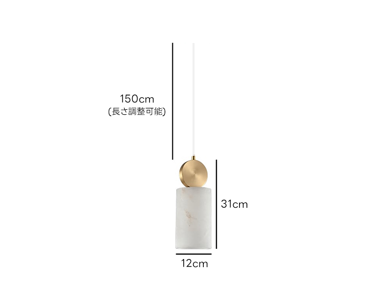 - 【高品質な素材とデザイン】高品質な大理石を使用し、その自然な模様が美しい光を演出します。ゴールドのアクセントが高級感を引き立て、どんな空間にも調和します。直径12cm、高さ31cmで、吊り下げ長さは最大150cmまで調整可能です。