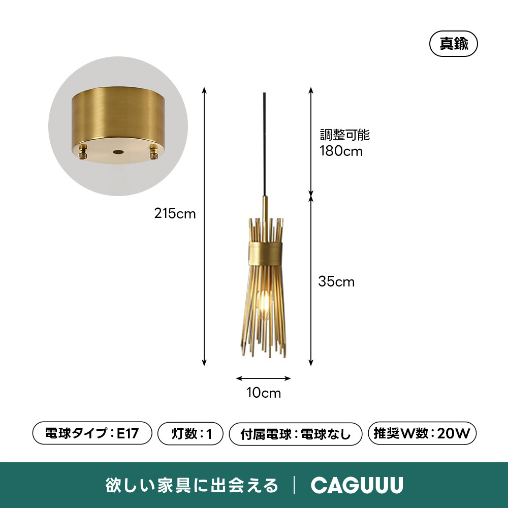- 【簡単な組立と調整可能な高さ】:組立が必要ですが、簡単に取り付けられる設計です。コードは180cmまで調整可能で、天井の高さに合わせてお好みの位置に設置できます。