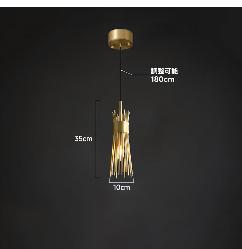 - 【視覚的インパクトのあるデザイン】:不規則に配置されたスティックが特徴のヴェールデザインペンダントライトは、アートピースのような存在感を持ち、空間に独特の陰影を生み出します。ゴールドの色合いが高級感を引き立て、どんなインテリアにもマッチします。