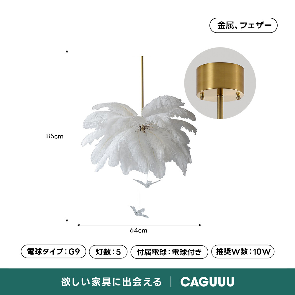- 【優雅な空間を演出するペンダントライト】:ホワイトフェザーペンダントライトは、柔らかな光を放ち、リビングや寝室に優雅な雰囲気を演出します。5灯の間接照明が空間を包み込み、心地よい明るさを提供します。