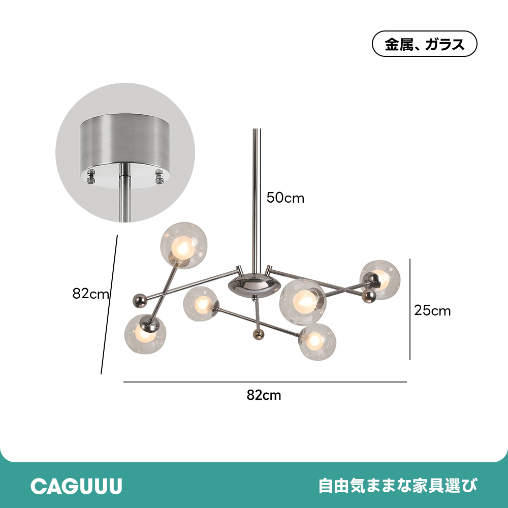 - 【シンプルモダンデザイン】このペンダントライトは、どんなインテリアにもマッチするシンプルでモダンなデザインが特徴です。シルバーの金属フレームと透明なガラスシェードが組み合わさり、洗練された印象を与えます。不規則に配置されたライトが、空間に動きと個性をもたらします。
