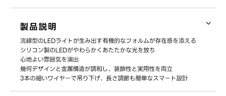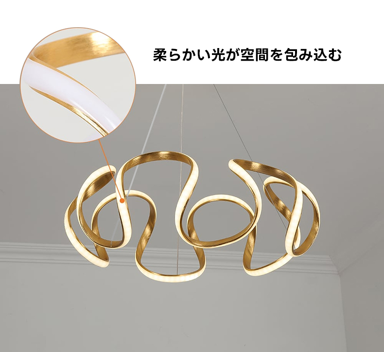 - 【快適な使用体験】このペンダントライトは、流線型のLEDライトが生み出す有機的なフォルムと、柔らかい光で心地よい雰囲気を演出します。空間全体を包み込むような光で、リラックスした時間を提供します。