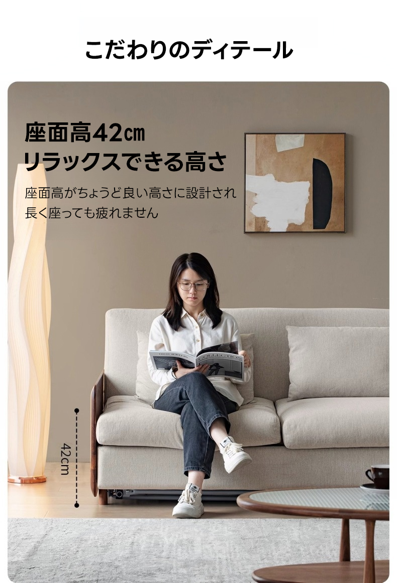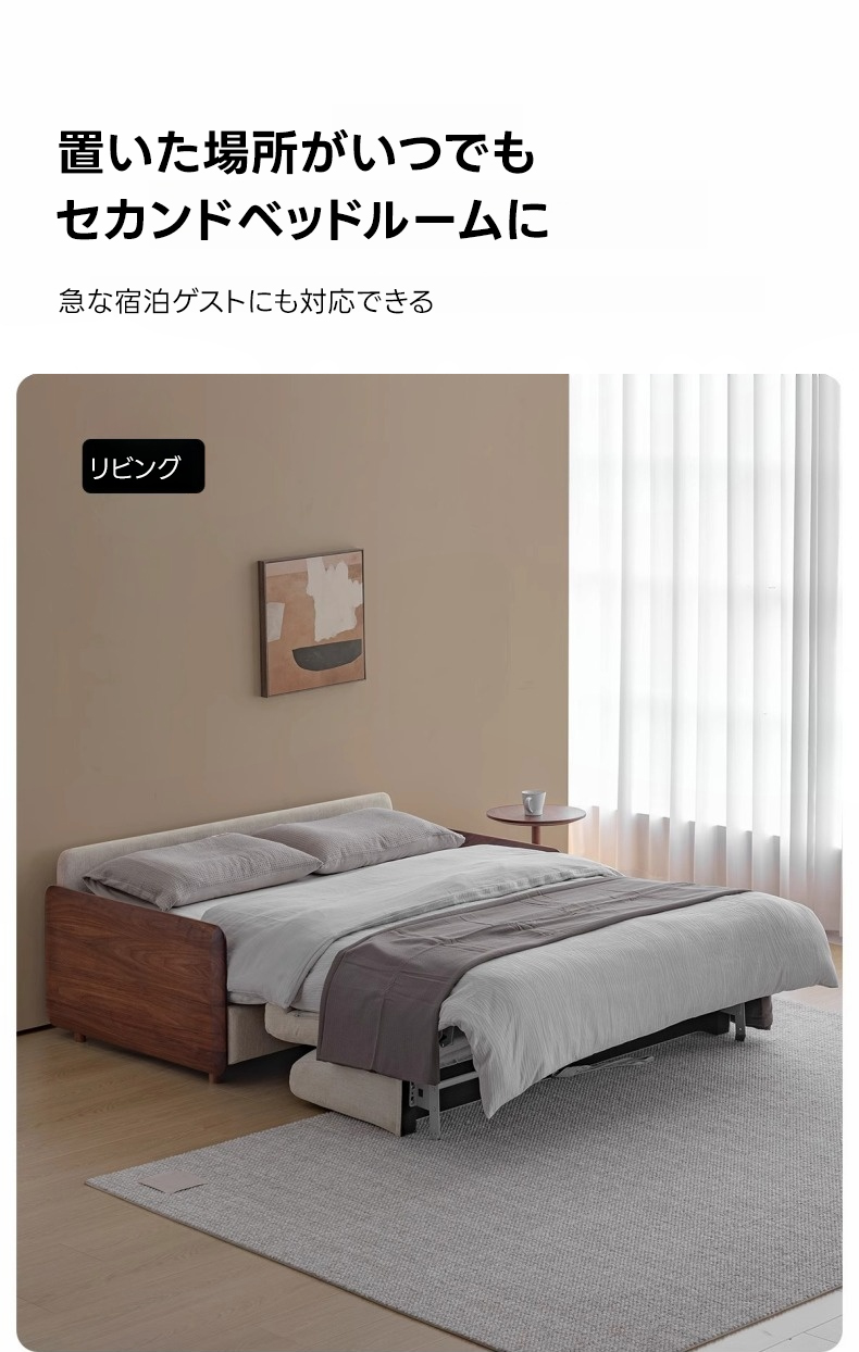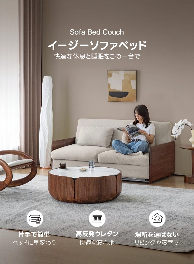 - 【簡単な切り替え機能】:このソファベッドは片手で簡単にソファからベッドに変換可能です。1.4mのダブルベッドとして使用でき、急な来客にも対応します。リビングや寝室での多用途な使い方が可能です。
