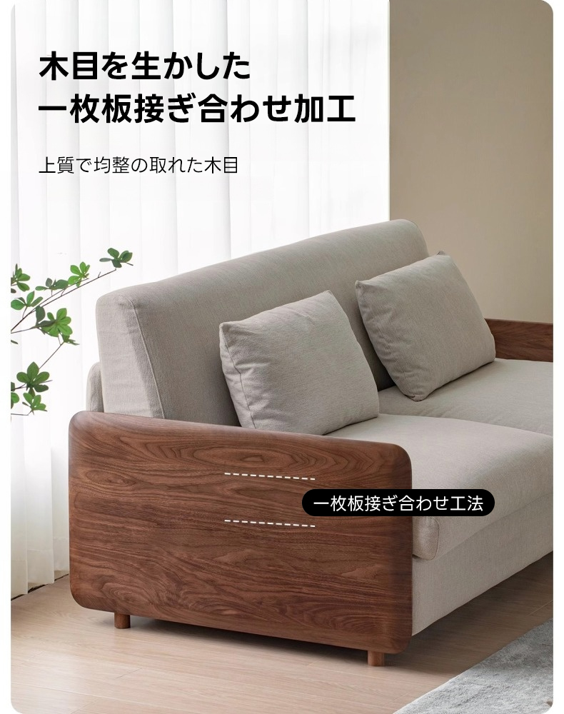 - 【高級感あふれるデザイン】:北米産FASグレードのウォールナット材を使用し、美しい木目が空間に上質さをプラスします。アームレストには丸みのある加工を施し、安全性も考慮されています。
