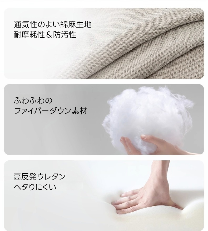 - 【快適な座り心地と寝心地】:高反発ウレタンとファイバーダウンのクッションが、快適な座り心地と寝心地を提供します。通気性も良く、耐摩耗性と防汚性に優れています。カップルやファミリーにぴったりの選択です。