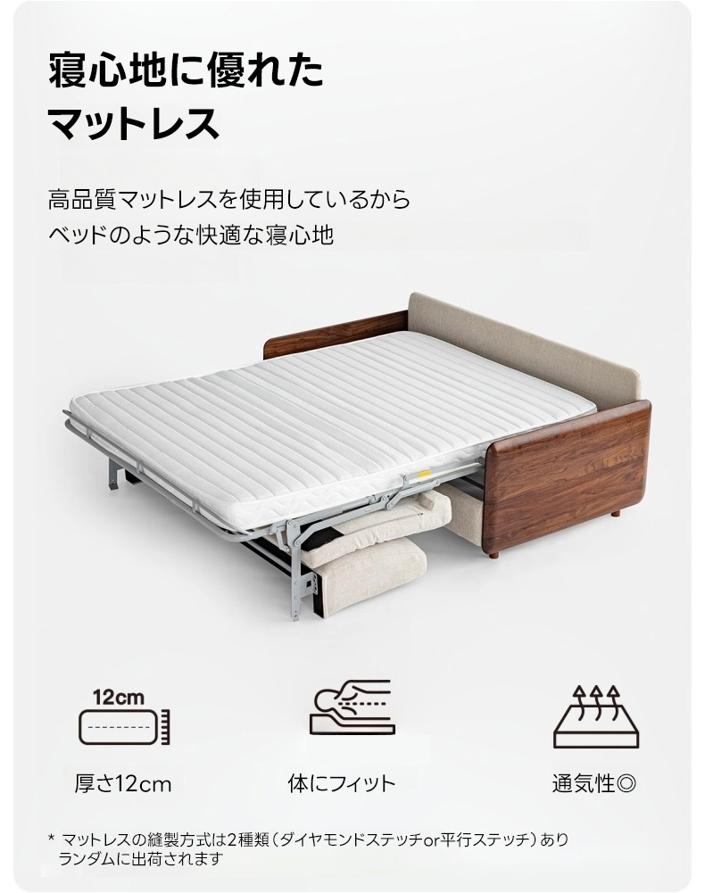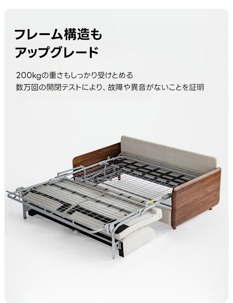 - 【優れたマットレス】:厚さ12cmの高品質マットレスを採用し、体にフィットする快適な寝心地を実現。200kgの重さにも耐えられる強固なフレーム構造で、数万回の開閉テストをクリアしています。