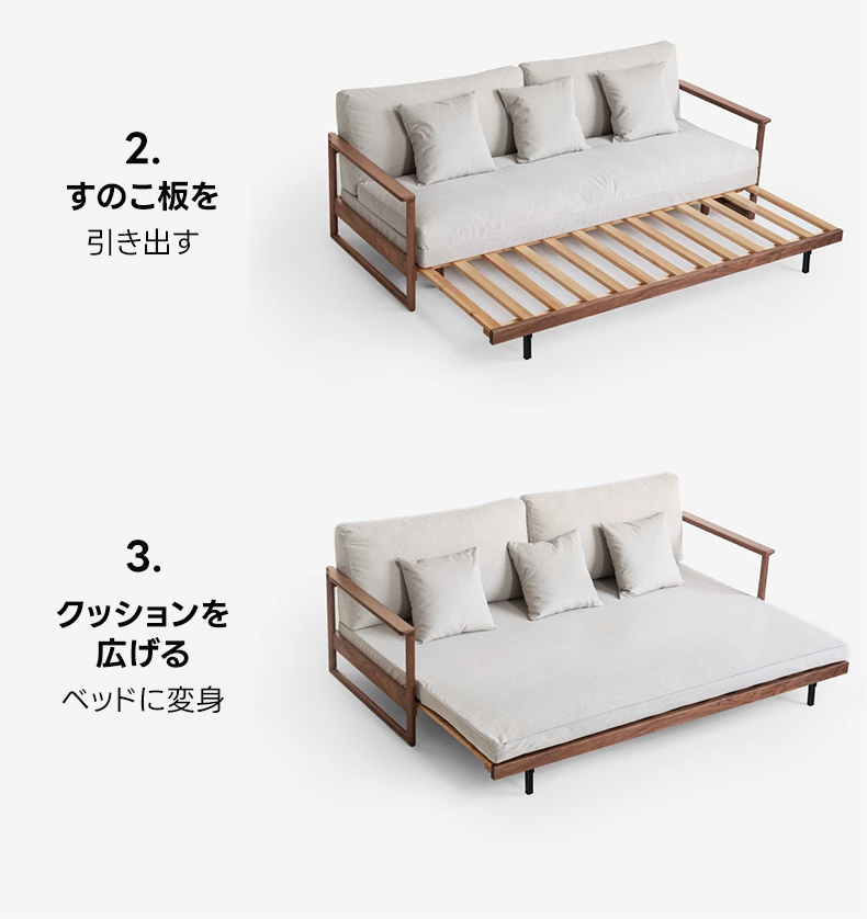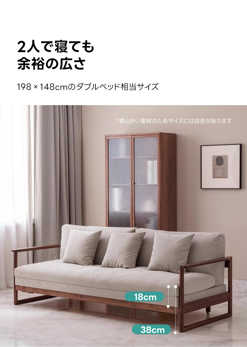 - 【カップルやファミリーに最適】ダブルベッドサイズに変換可能で、2人で寝てもゆったりとしたスペースを確保できます。カップルやファミリー向けに設計され、リビングでのくつろぎ時間を豊かにします。