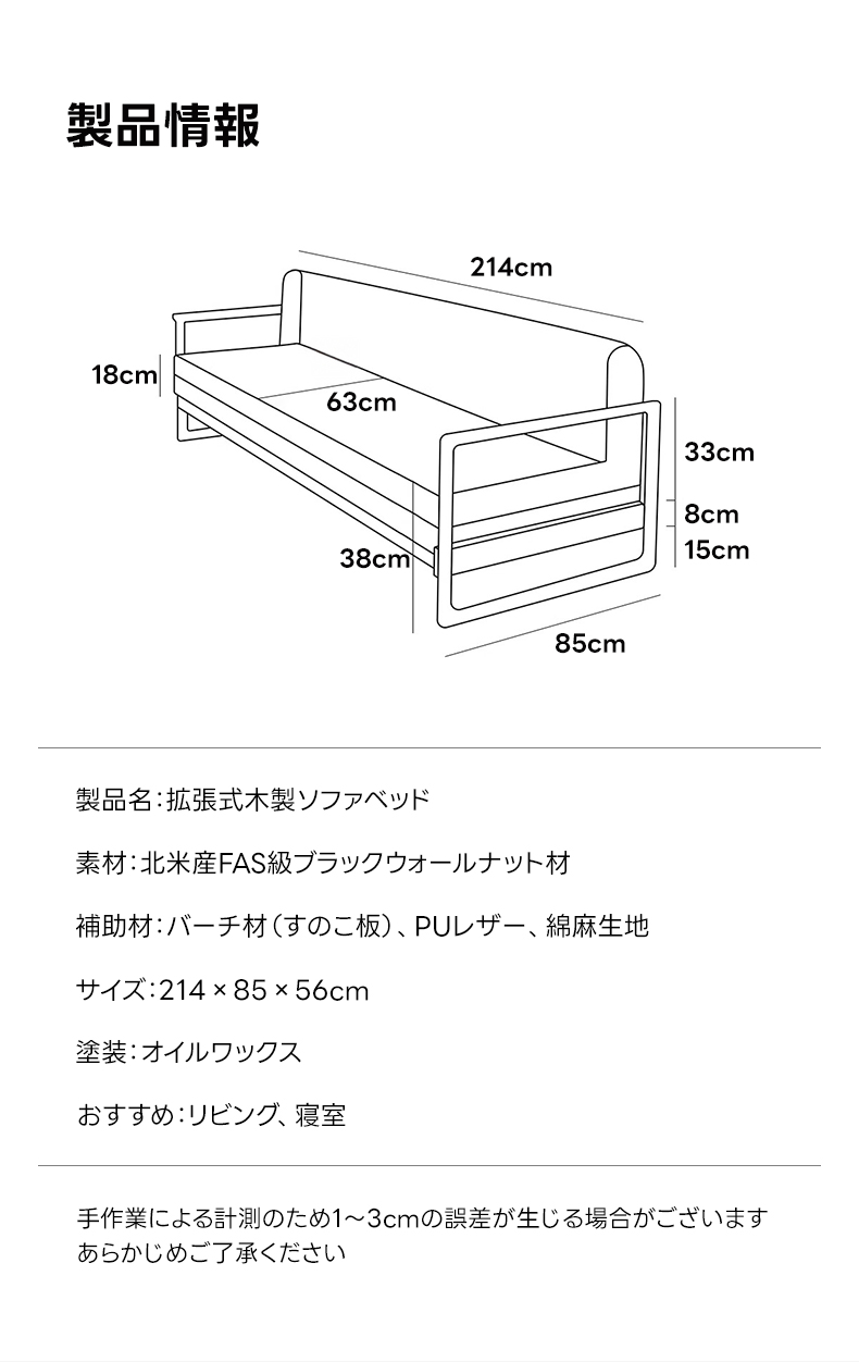 - 【多機能性と快適さを兼ね備えたソファベッド】この拡張式木製ソファベッドは、ソファからベッドへの変換が簡単で、多様な用途に対応します。リビングや寝室に最適で、快適な座り心地を提供します。