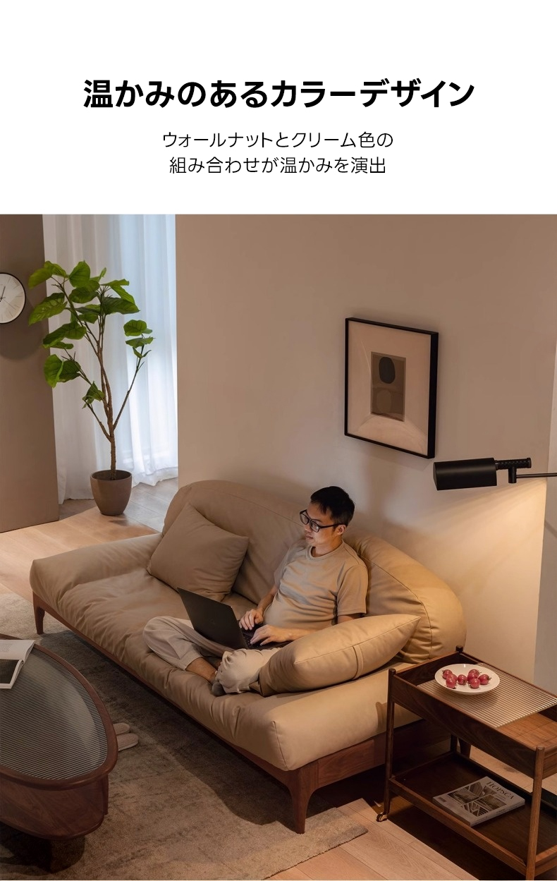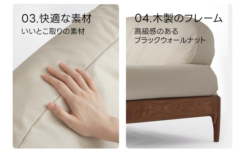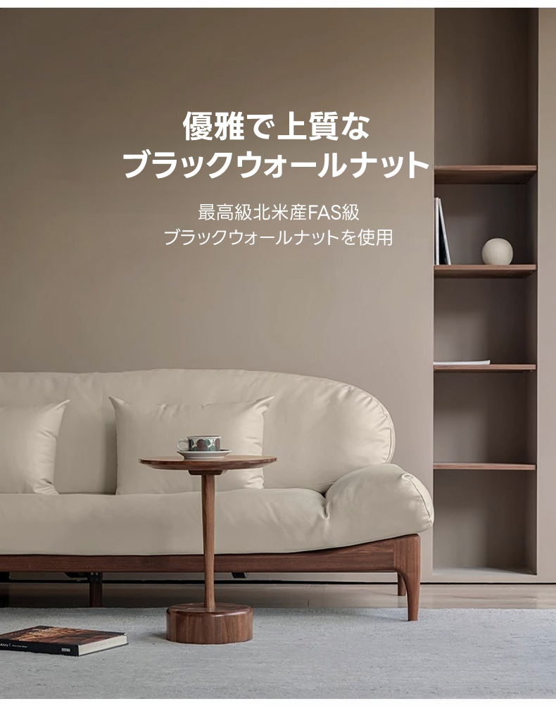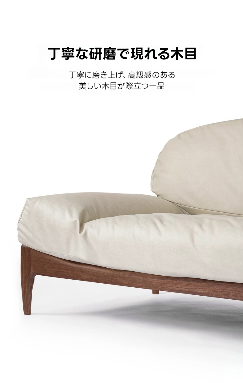 - 【高品質な素材とデザイン】北米産FAS級ブラックウォールナット材を使用したフレームが特徴で、優雅で高級感のある仕上がり。マイクロファイバーとPUレザーのファブリックが、ナチュラルなホワイトカラーでどんなインテリアにも調和します。