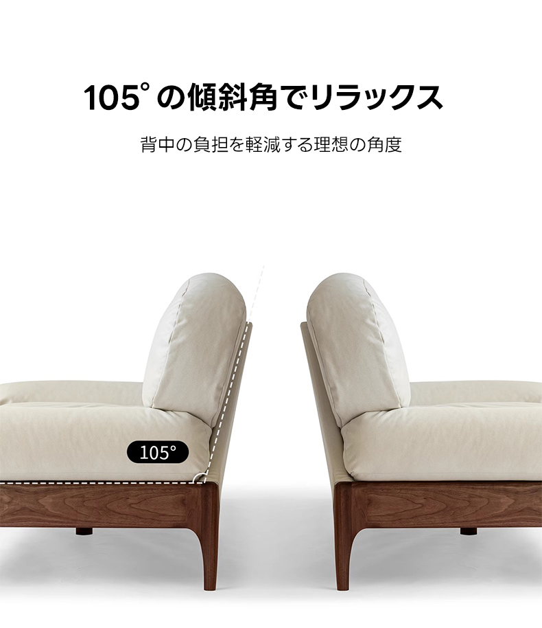 - 【快適な座り心地を提供】高反発ウレタンとファイバーダウンのクッション材を組み合わせ、柔らかさとサポート性を兼ね備えた座り心地を実現。105°の傾斜角が背中の負担を軽減し、リラックスした姿勢をサポートします。