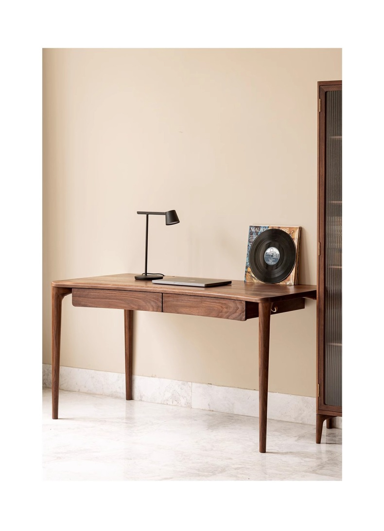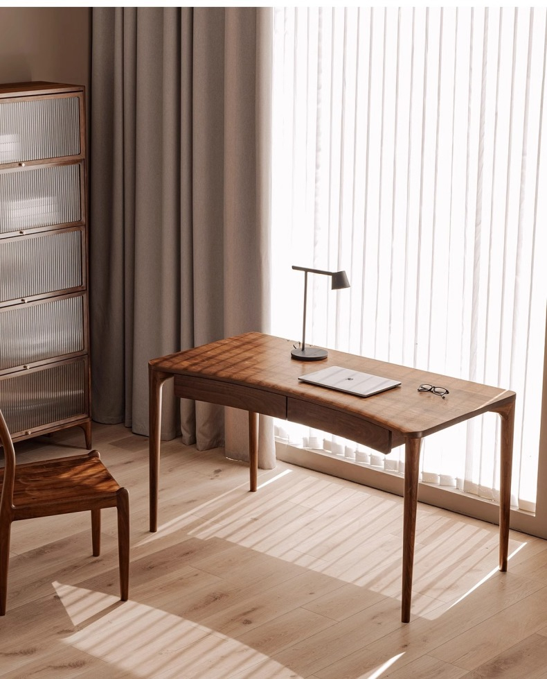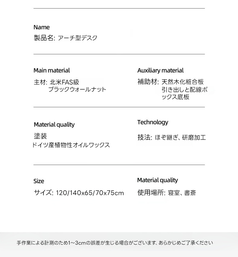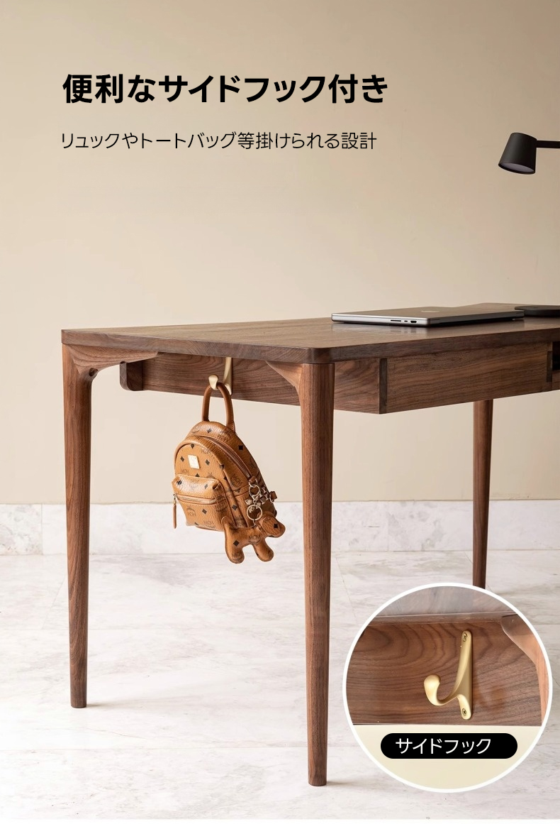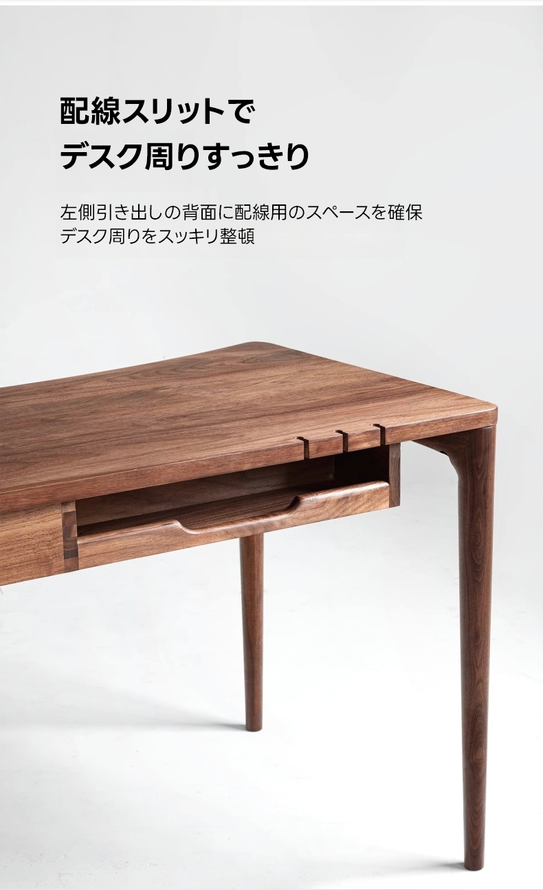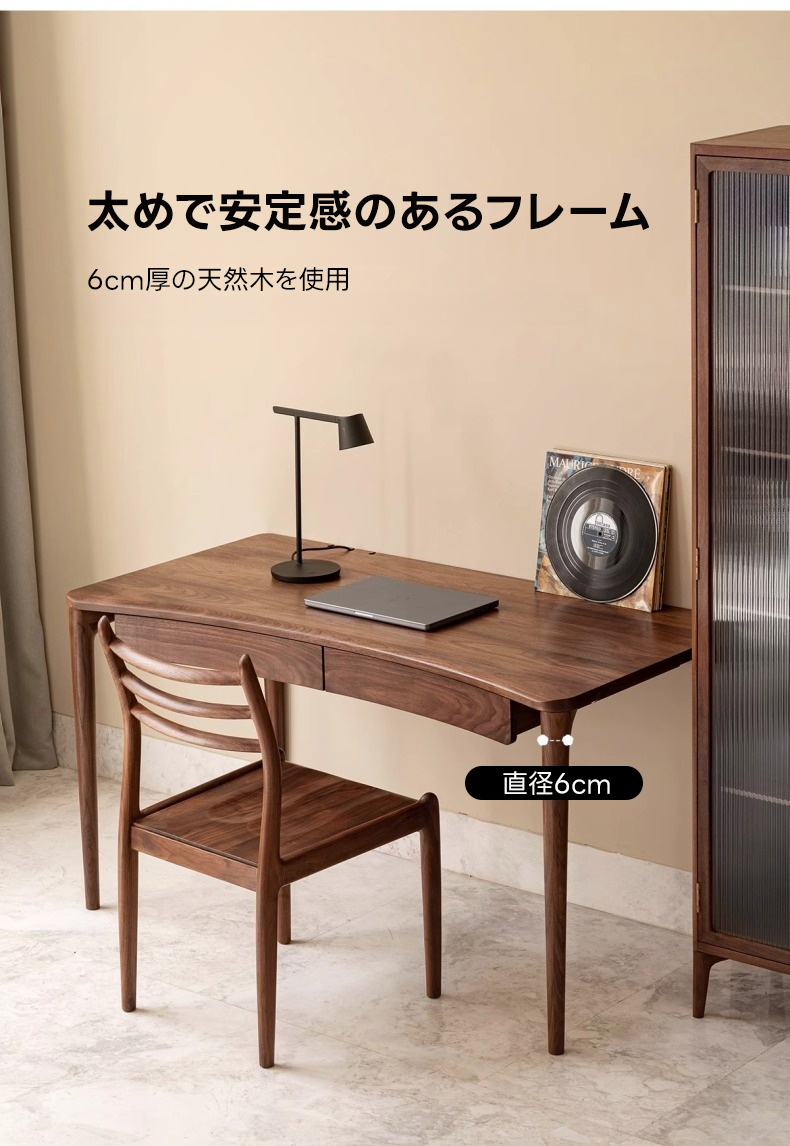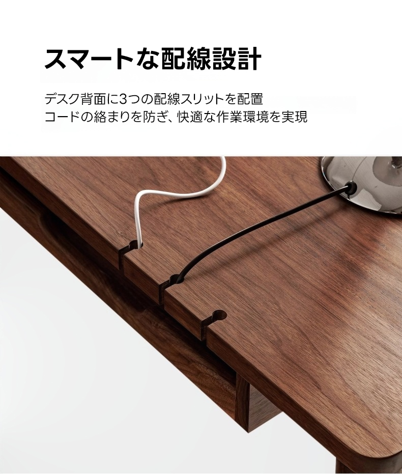 - 【フィット感のあるアーチ型デザイン】ブラックウォールナット材ワーキングデスクは、身体にフィットするアーチ型デザインを採用。長時間の作業でも快適に過ごせるよう、優しいカーブがストレスを軽減します。デスクワークをより効率的にするための理想的な選択です。