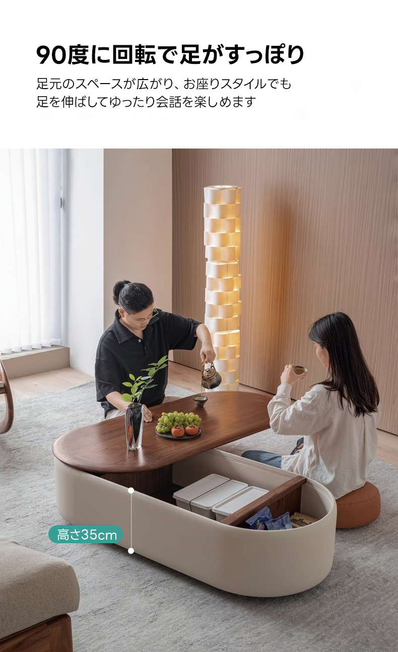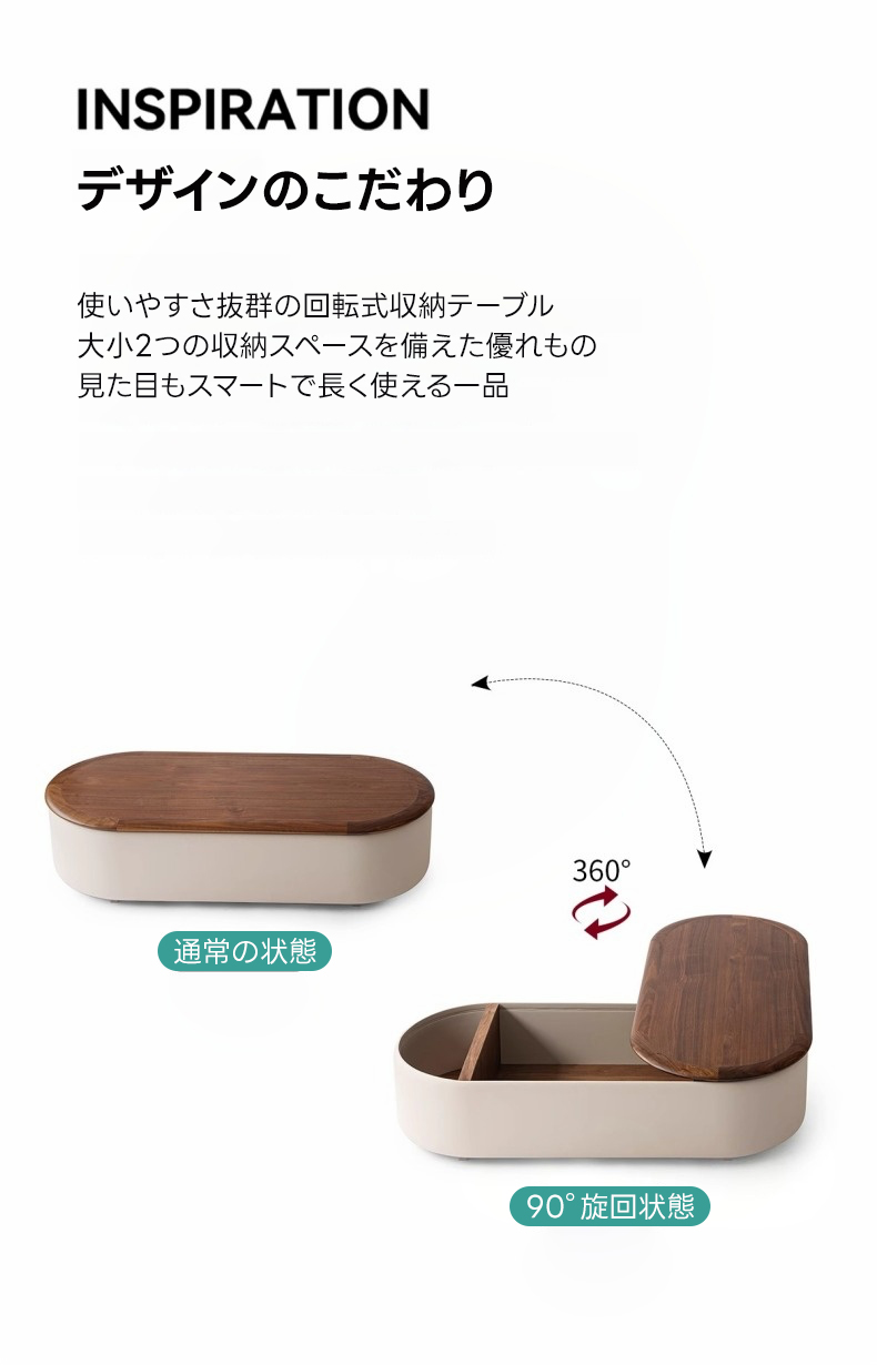 - 【多機能な回転天板】:360度回転可能な天板を備えたこのローテーブルは、使いやすい位置に調整可能で、リビングテーブルとしてだけでなく、カウンターやサイドテーブルとしても活用できます。多様なシーンでの使用が可能で、日々の生活に柔軟に対応します。