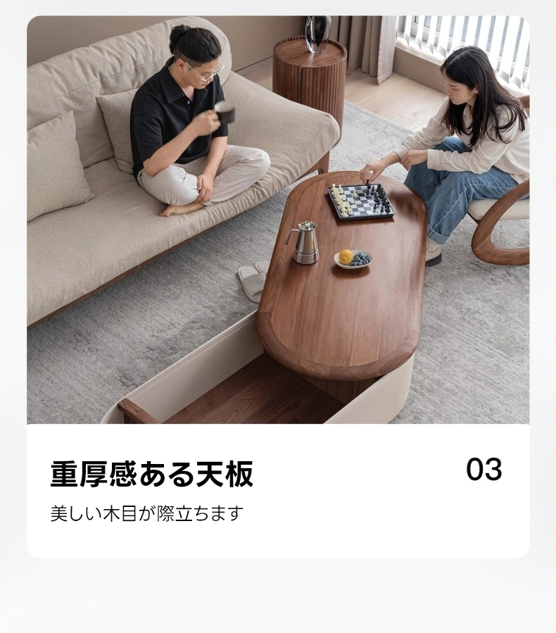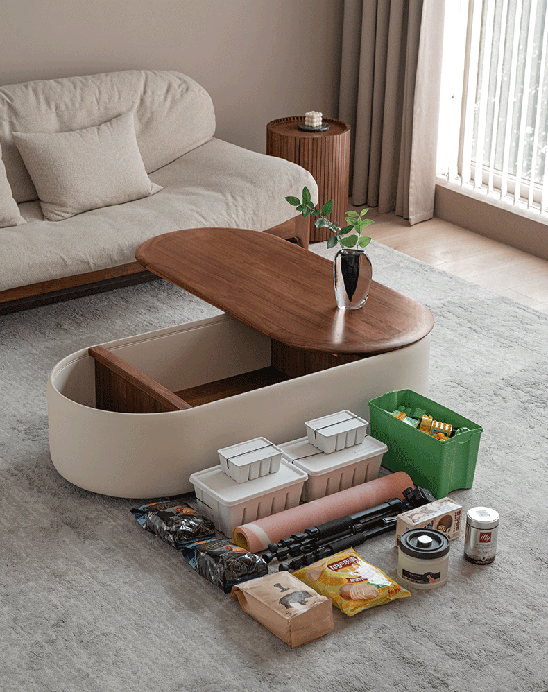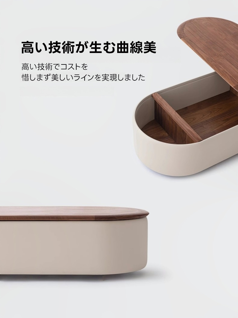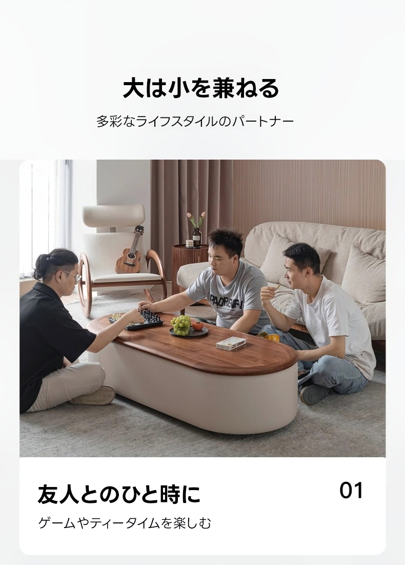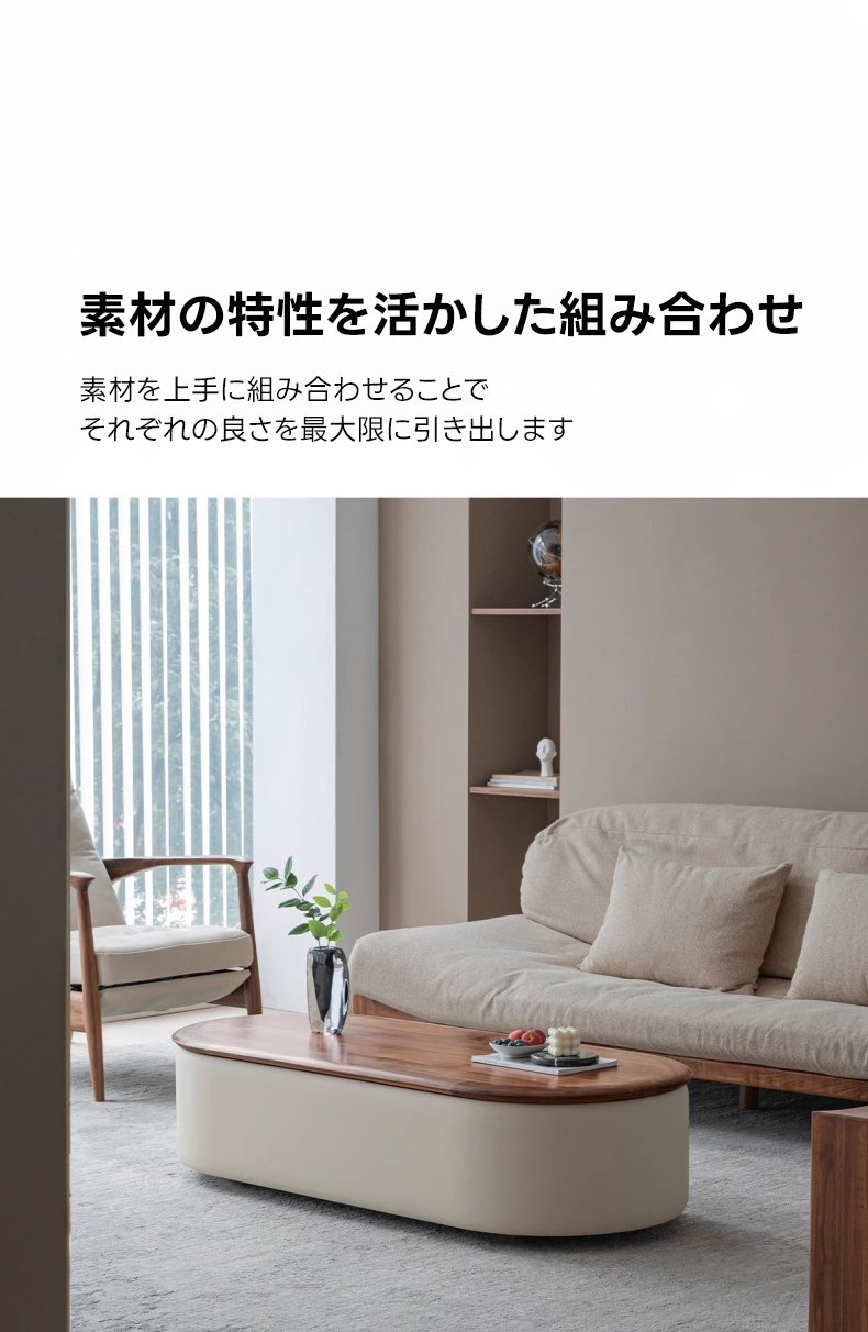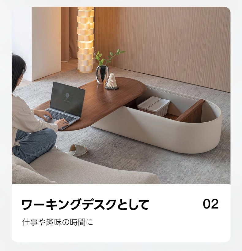 - 【広々とした収納スペース】:テーブルの下には大小2つの収納スペースがあり、日用品やおもちゃ、お菓子などをすっきりと収納できます。仕切りが少ないため、大きなアイテムも自由に収納可能で、リビングをすっきりと保つことができます。