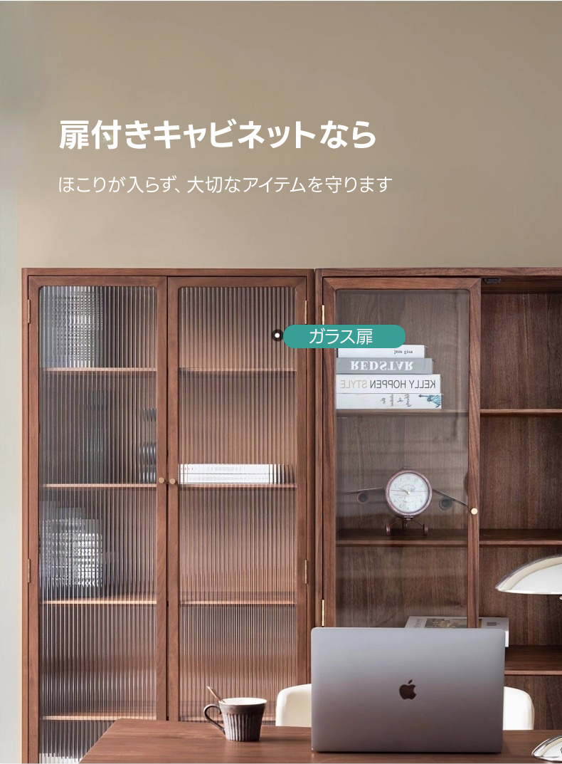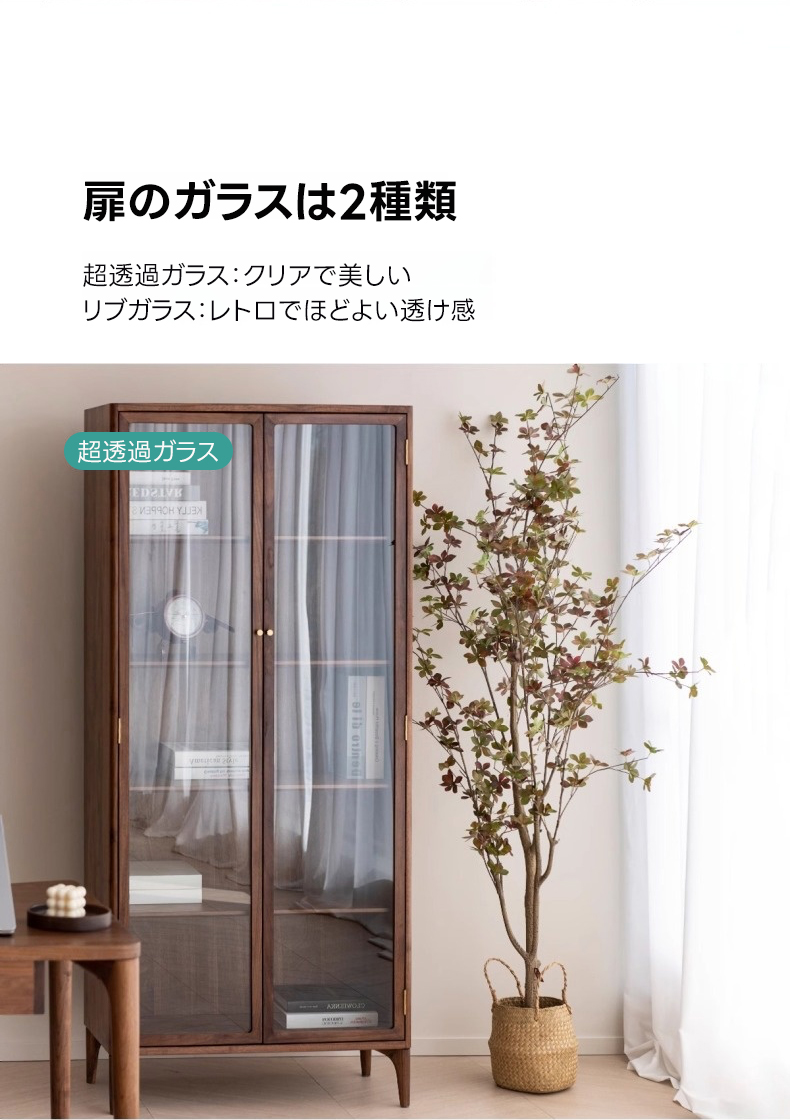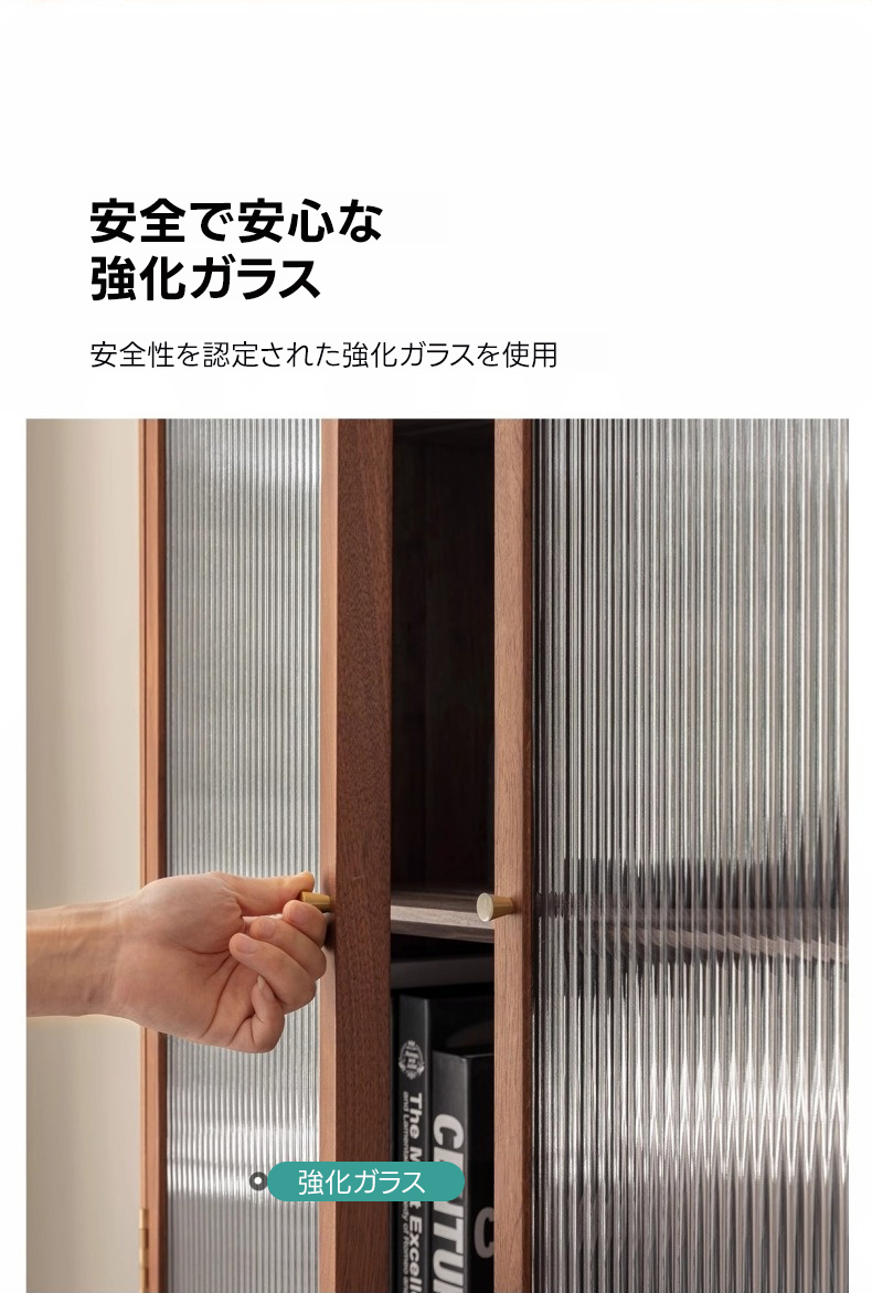 - 【安全性とデザインの両立】:リブガラスと超透過ガラスの2種類から選べるガラス扉は、どちらも安全性の高い強化ガラスを使用。角を丸くした設計により安全性が高く、お子様のいる家庭でも安心して使用できます。
