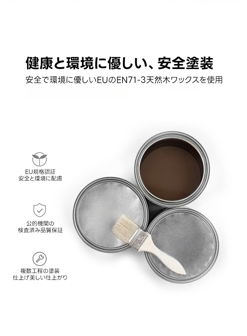 - 【環境に優しい塗装】:EUのEN71-3天然木ワックスを使用し、健康と環境に配慮した安全な塗装が施されています。組み立て品でありながら、簡単に設置できるように設計されています。
