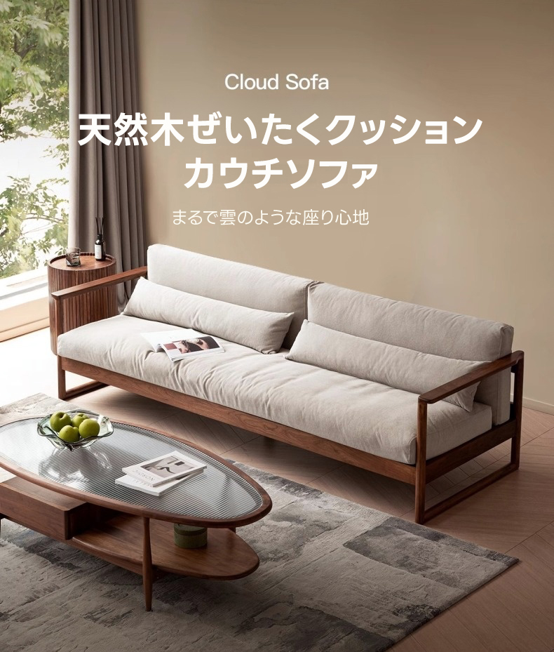 天然木ぜいたくクッションカウチソファ