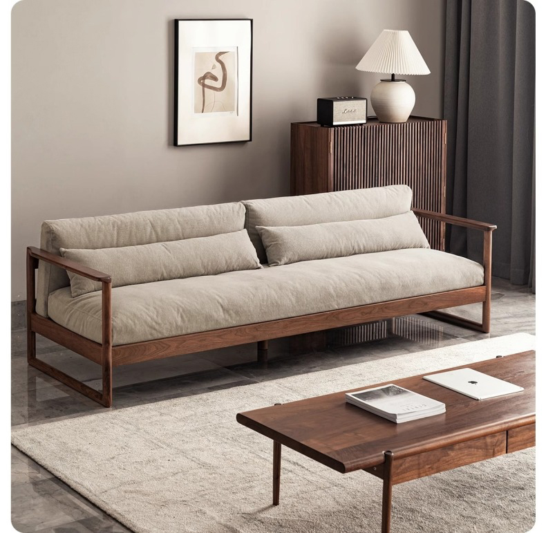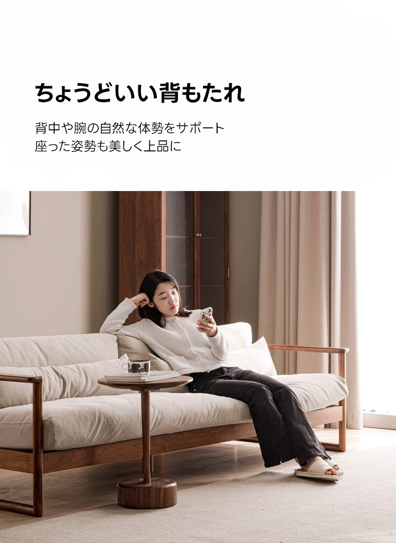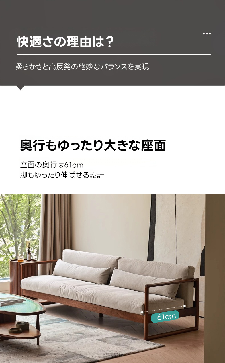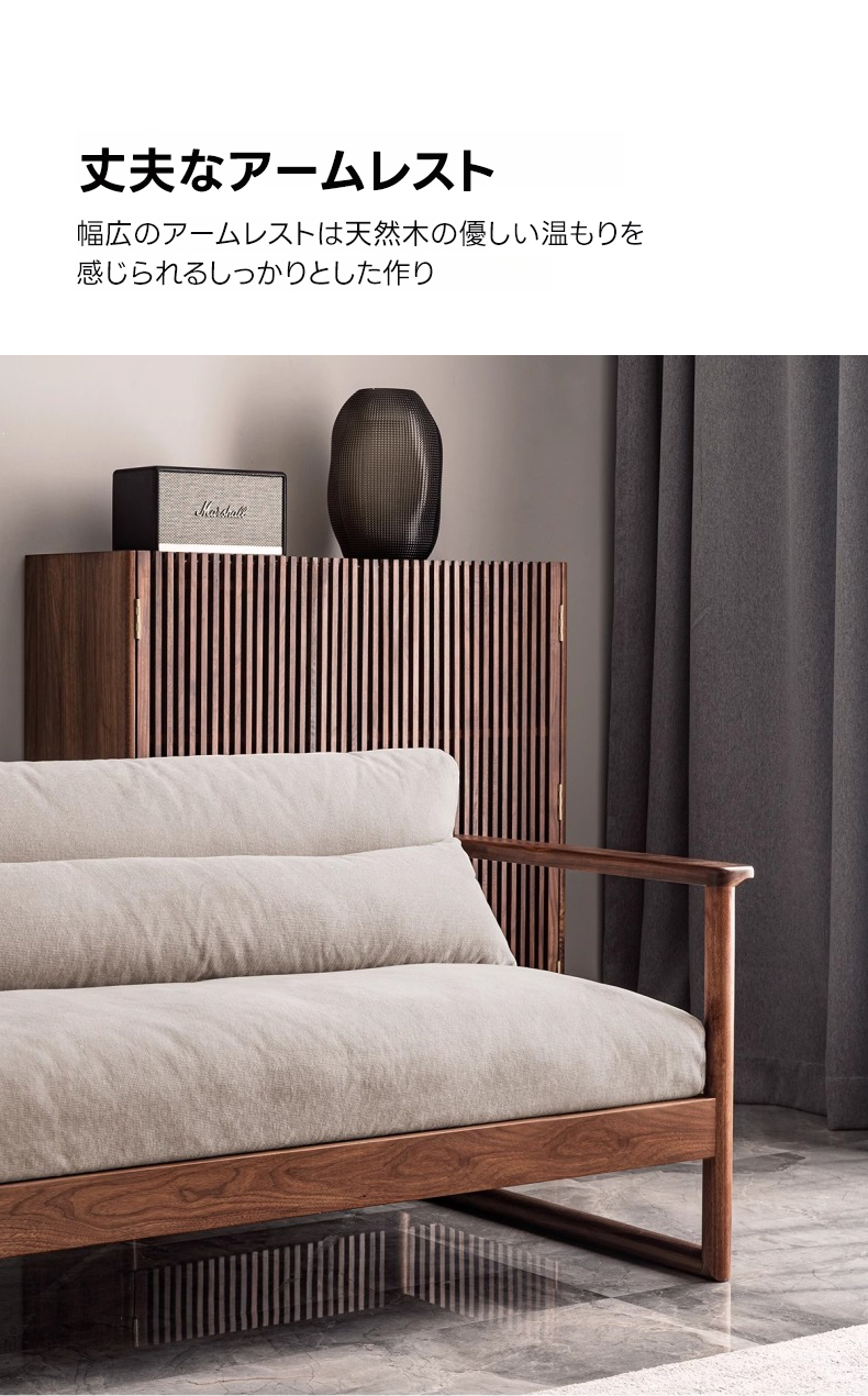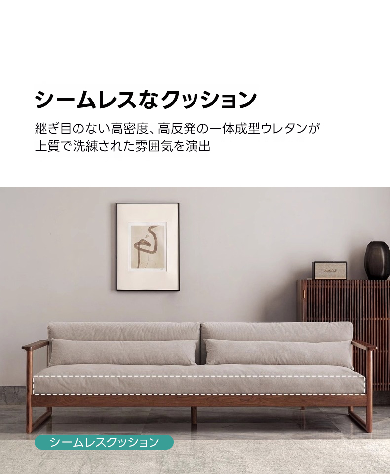 - 【高品質な素材とデザイン】ブラックウォールナット材のフレームは、耐久性に優れ、自然の美しさを感じさせます。継ぎ目のないシームレスなクッションデザインが、洗練された雰囲気を演出し、どんなスタイルの部屋にもマッチします。