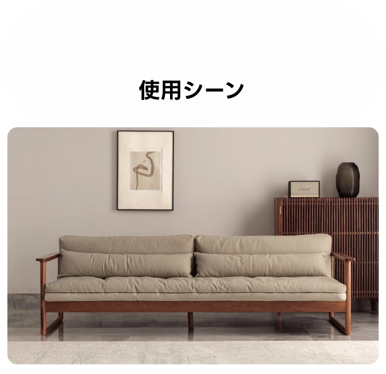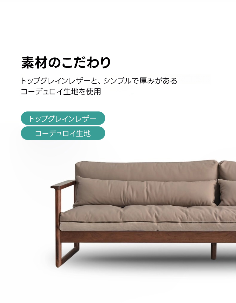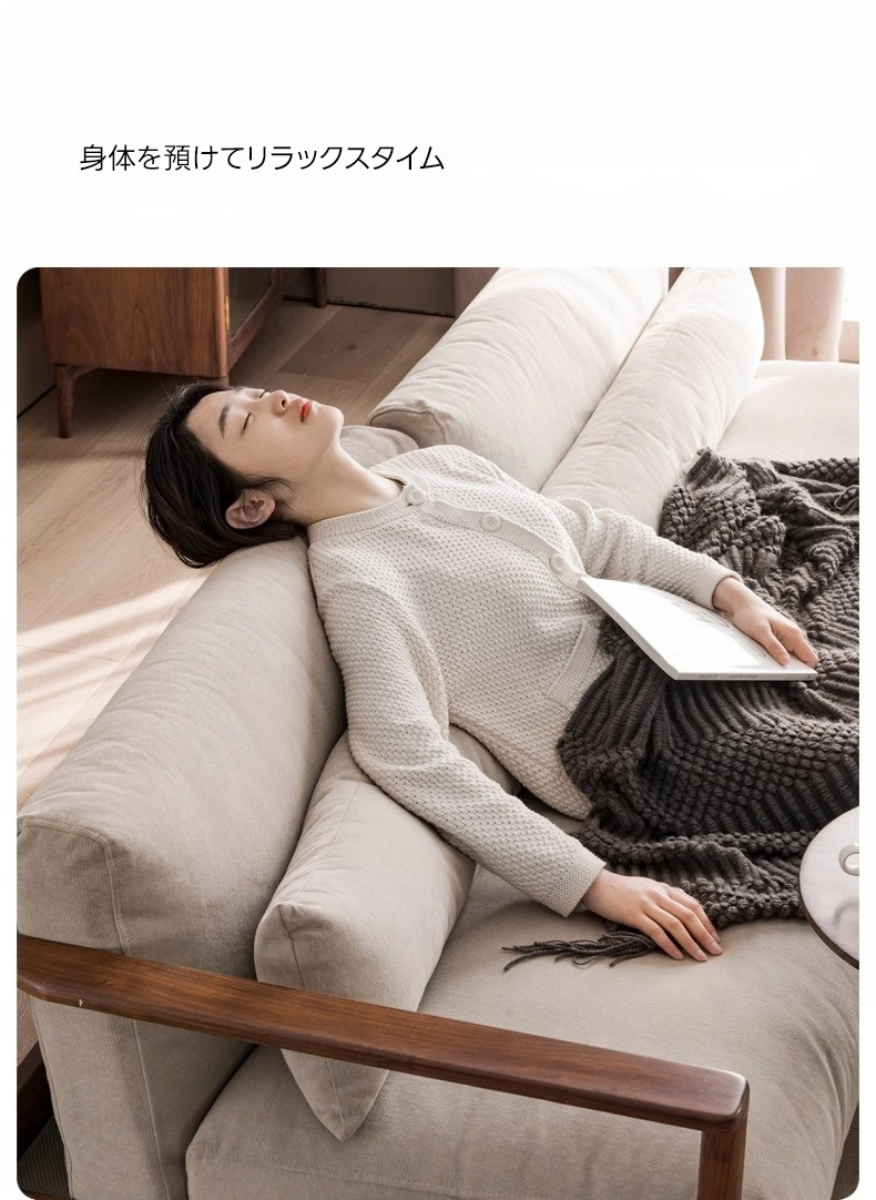 - 【高級感あふれるデザイン】天然木ぜいたくクッションカウチソファは、北米産ブラックウォールナット材を使用し、自然の温もりと高級感を兼ね備えたデザインが特徴です。どんなインテリアにも調和するナチュラルなベージュとモカの色合いが、リビングルームをスタイリッシュに演出します。