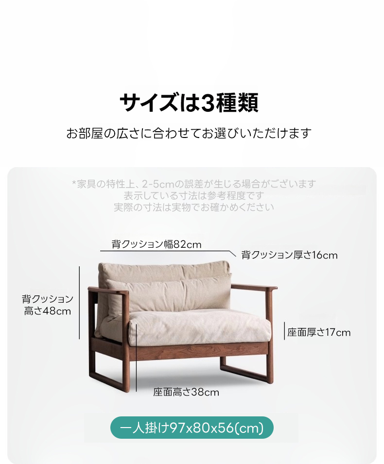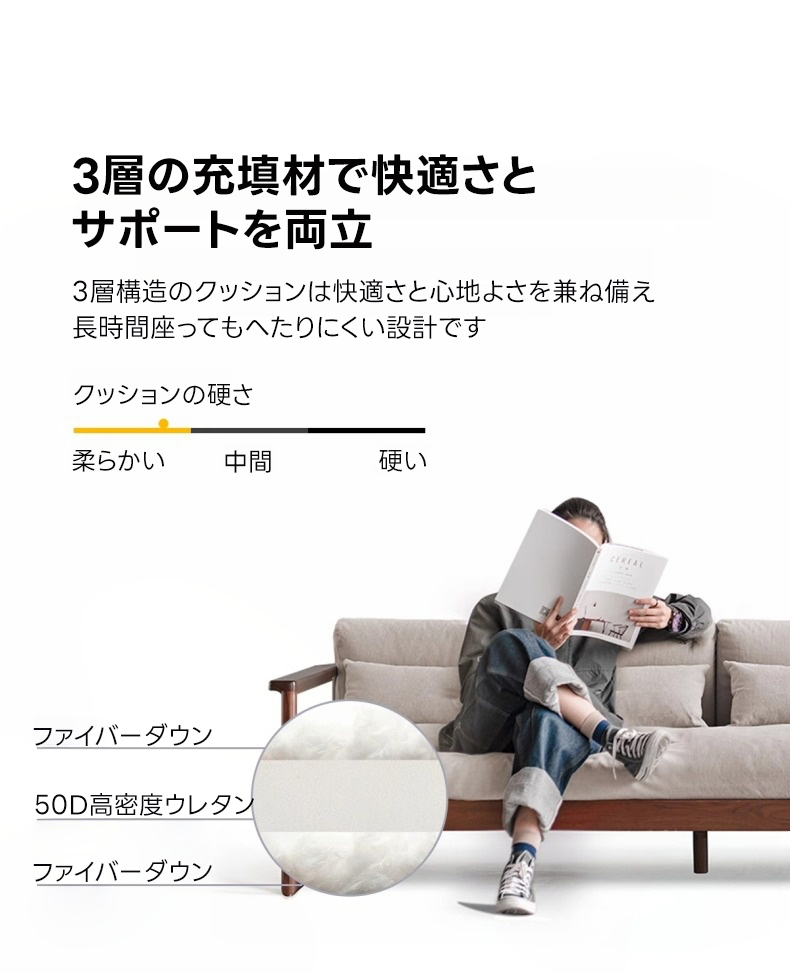 - 【清潔で便利な使用感】クッションカバーは取り外して丸洗い可能で、いつでも清潔感を保てます。サイズ展開も豊富で、1人掛け、2人掛け、3人掛けの3種類からお部屋の広さに合わせてお選びいただけます。