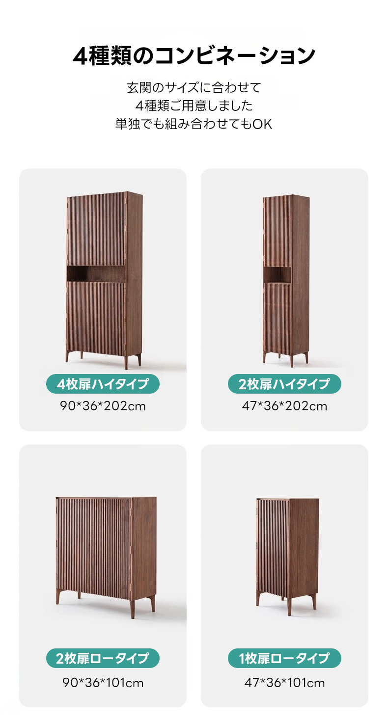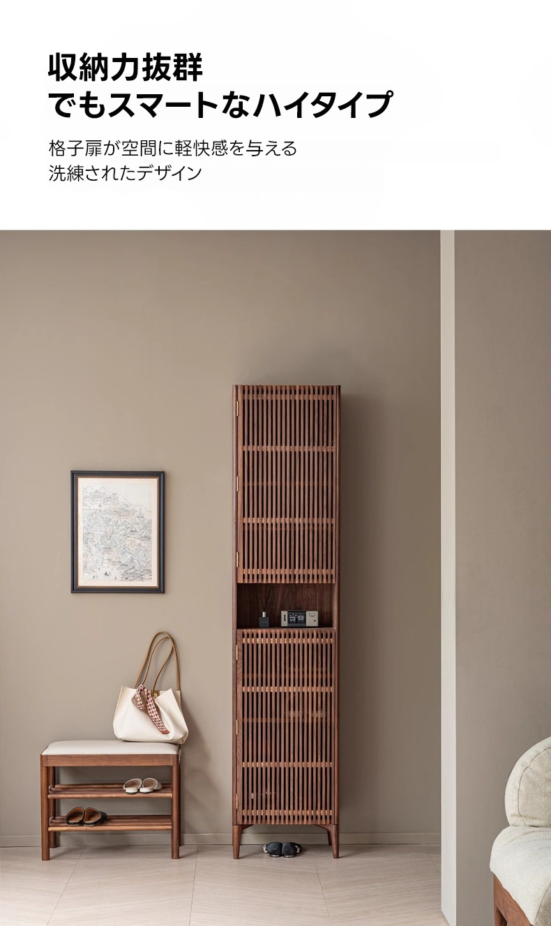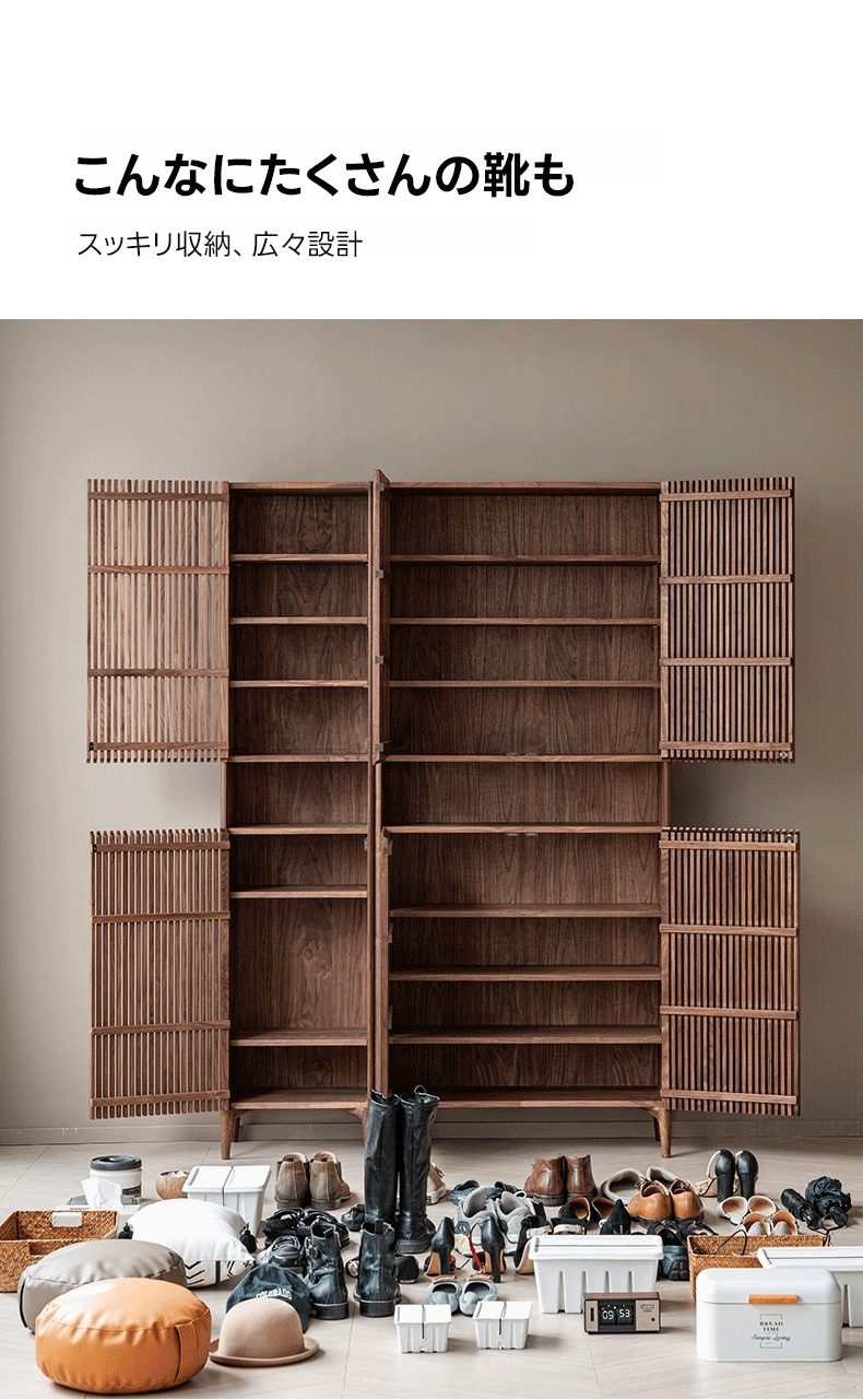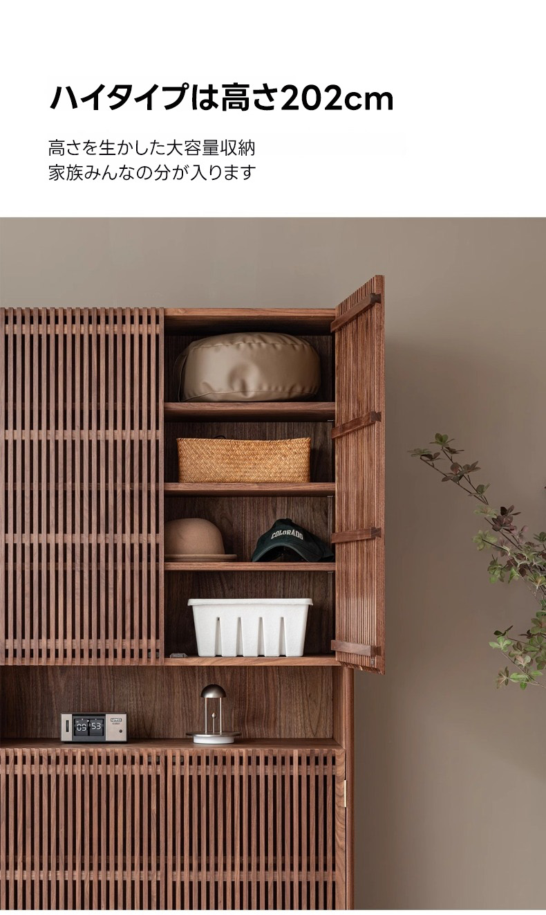 - 【大容量収納スペース】大容量の収納スペースで、家族全員の靴をすっきりと収納できます。高さ202cmのハイタイプもあり、効率的にスペースを活用できます。