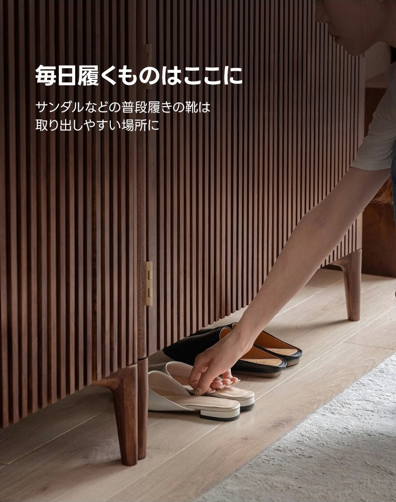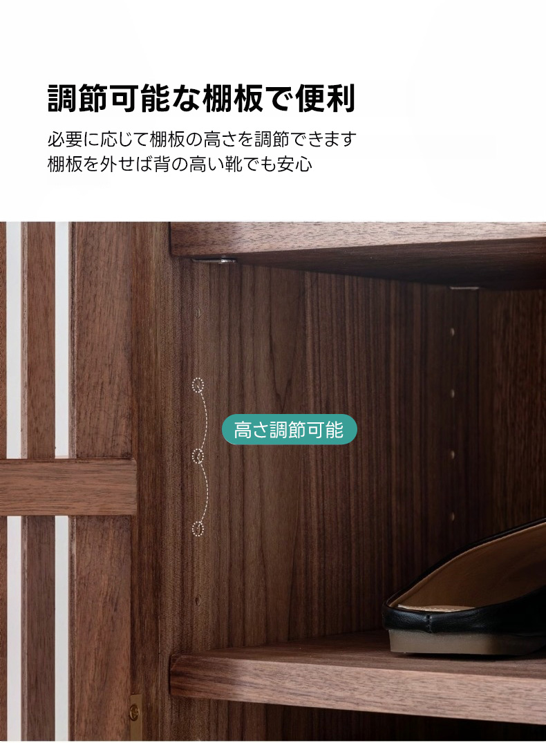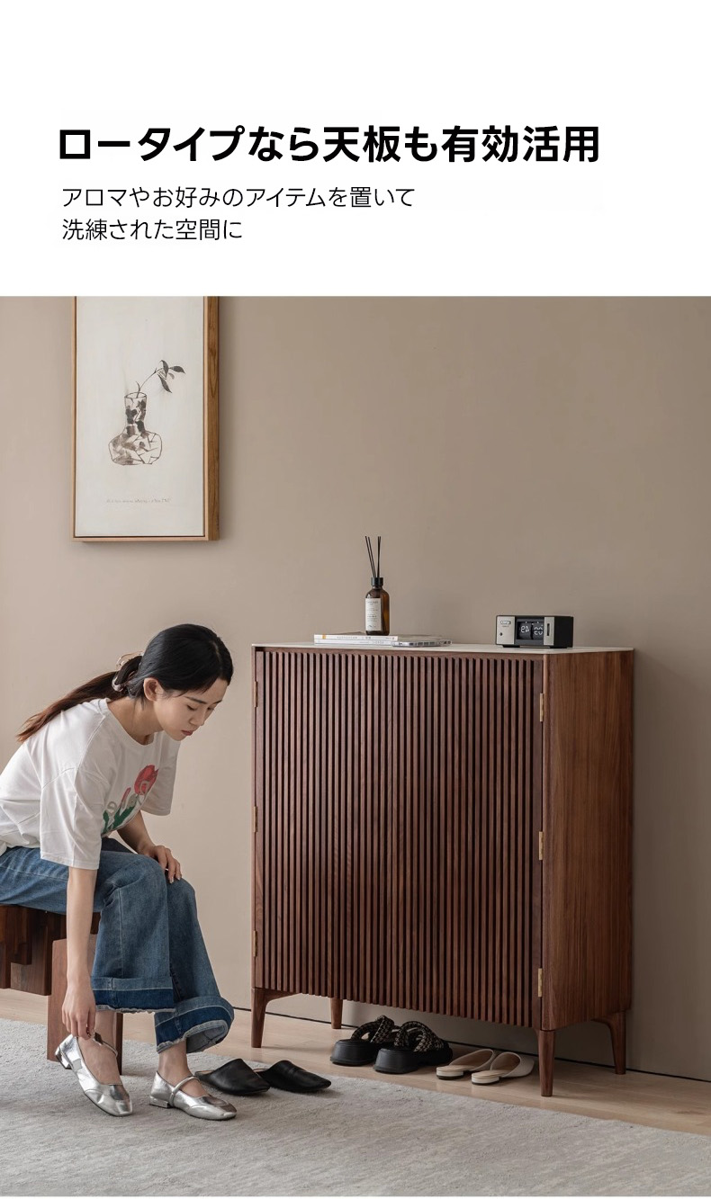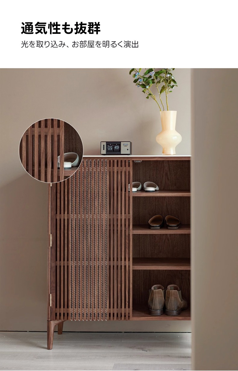 - 【高級感あふれるシューズラック】ウォールナット材を使用した高級感あふれるシューズラックで、玄関をスタイリッシュに演出します。耐久性と美しい木目を実現し、どんなインテリアにもマッチします。