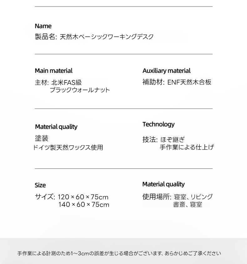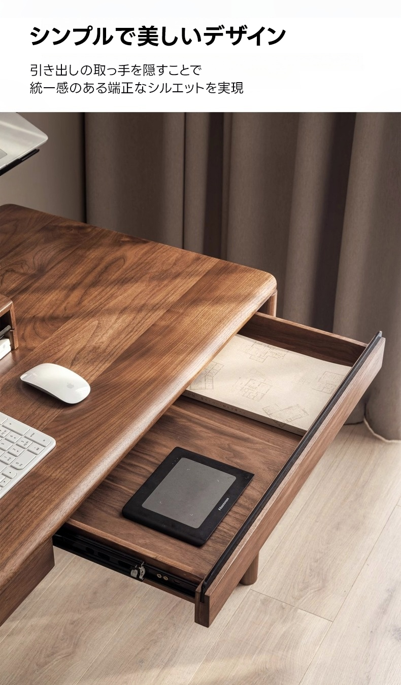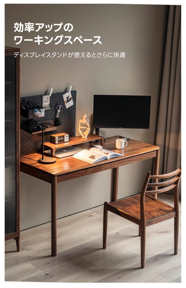 - 【高級感あふれるデザイン】天然木ベーシックワーキングデスクは、北米FAS級のブラックウォールナットを使用し、美しい木目と自然な風合いを最大限に引き出しています。シンプルながらも高級感を感じさせるデザインで、どんなインテリアにもマッチします。