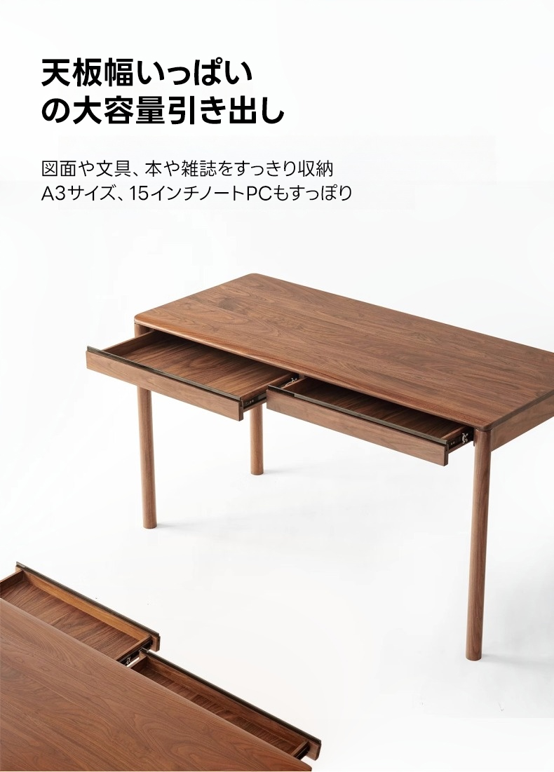 - 【快適な収納機能】2つの大容量引き出しが付いており、A3サイズの書類や15インチのノートPCもすっきり収納可能です。引き出しは高品質なレールを採用し、スムーズな開閉が可能で長く快適に使用できます。
