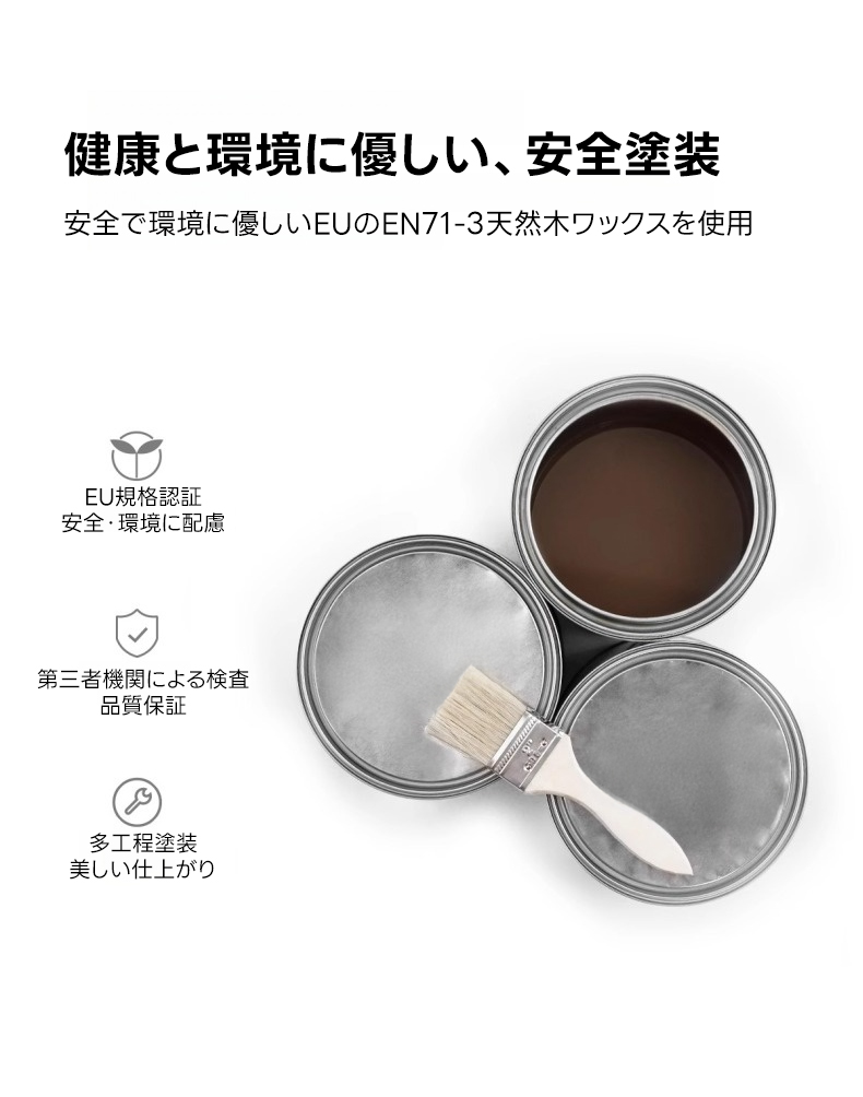 - 【高品質な素材と設計】デスクのエッジは滑らかなラウンドエッジ加工が施され、安全性とデザイン性を兼ね備えています。さらに、ドイツ製の天然ワックスで仕上げられており、健康と環境に配慮した安全な塗装が施されています。