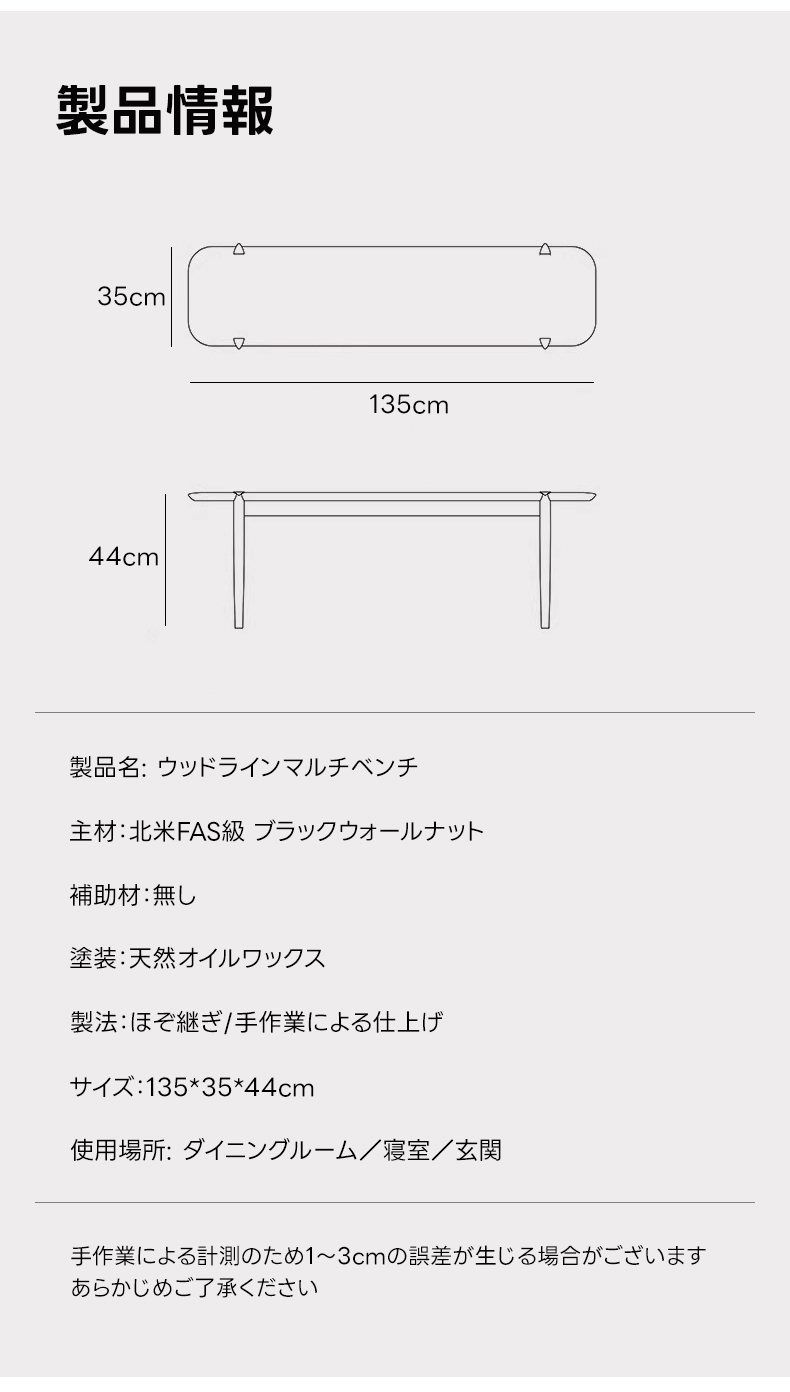- 【高級感溢れる素材とデザイン】ウッドラインマルチベンチは、北米産のFAS級ブラックウォールナット材を使用し、天然オイルワックスで仕上げられた高級感溢れるベンチです。シンプルでありながらレトロなデザインが特徴で、どんなインテリアにも自然に溶け込みます。