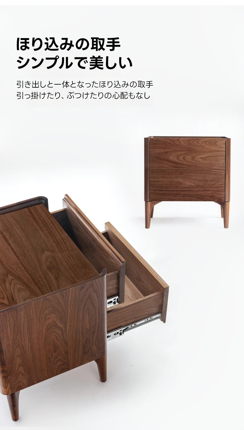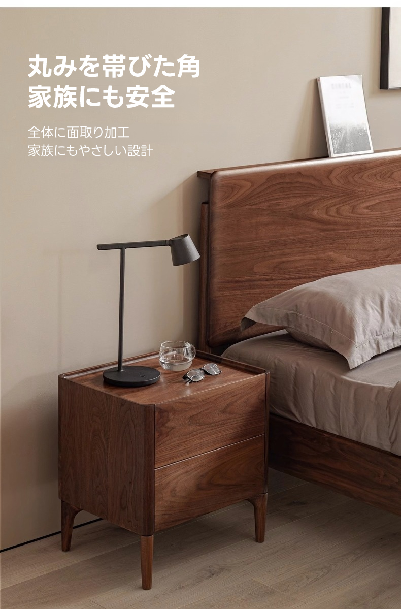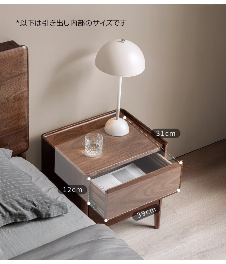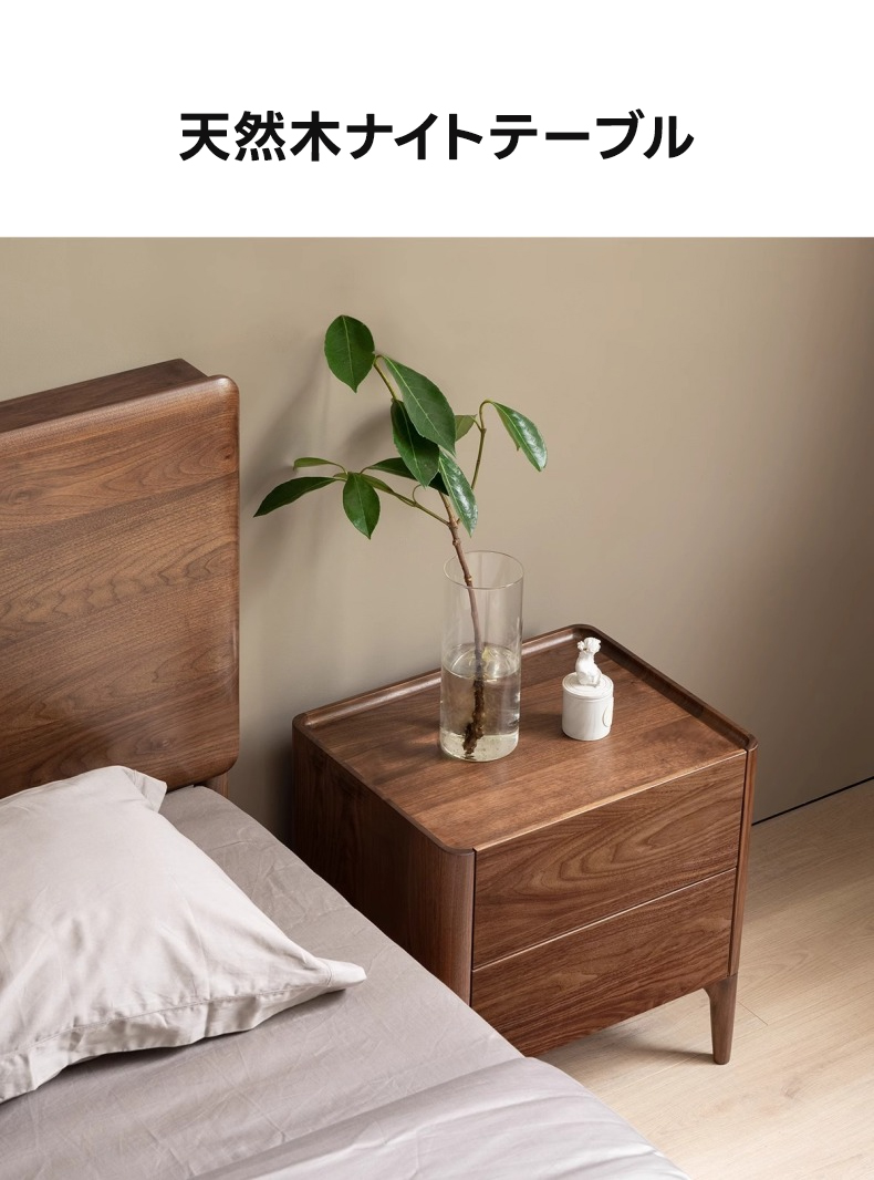 - 【高級感あふれる天然木ナイトテーブル】北米産FASグレードのブラックウォールナット材を使用し、ナチュラルで落ち着いたブラウンの色合いが寝室を上品に演出します。美しい木目と質感が特徴で、どんなインテリアにも調和します。