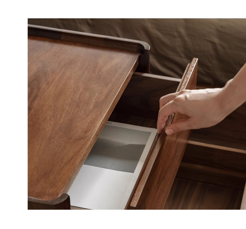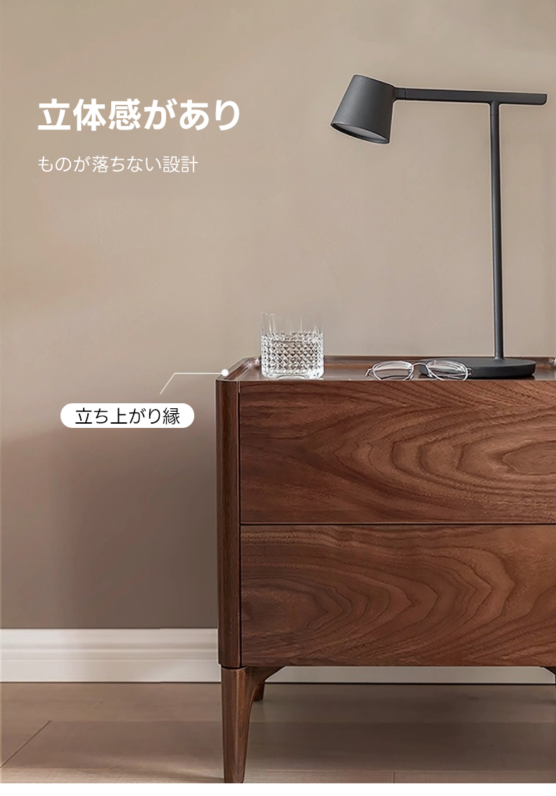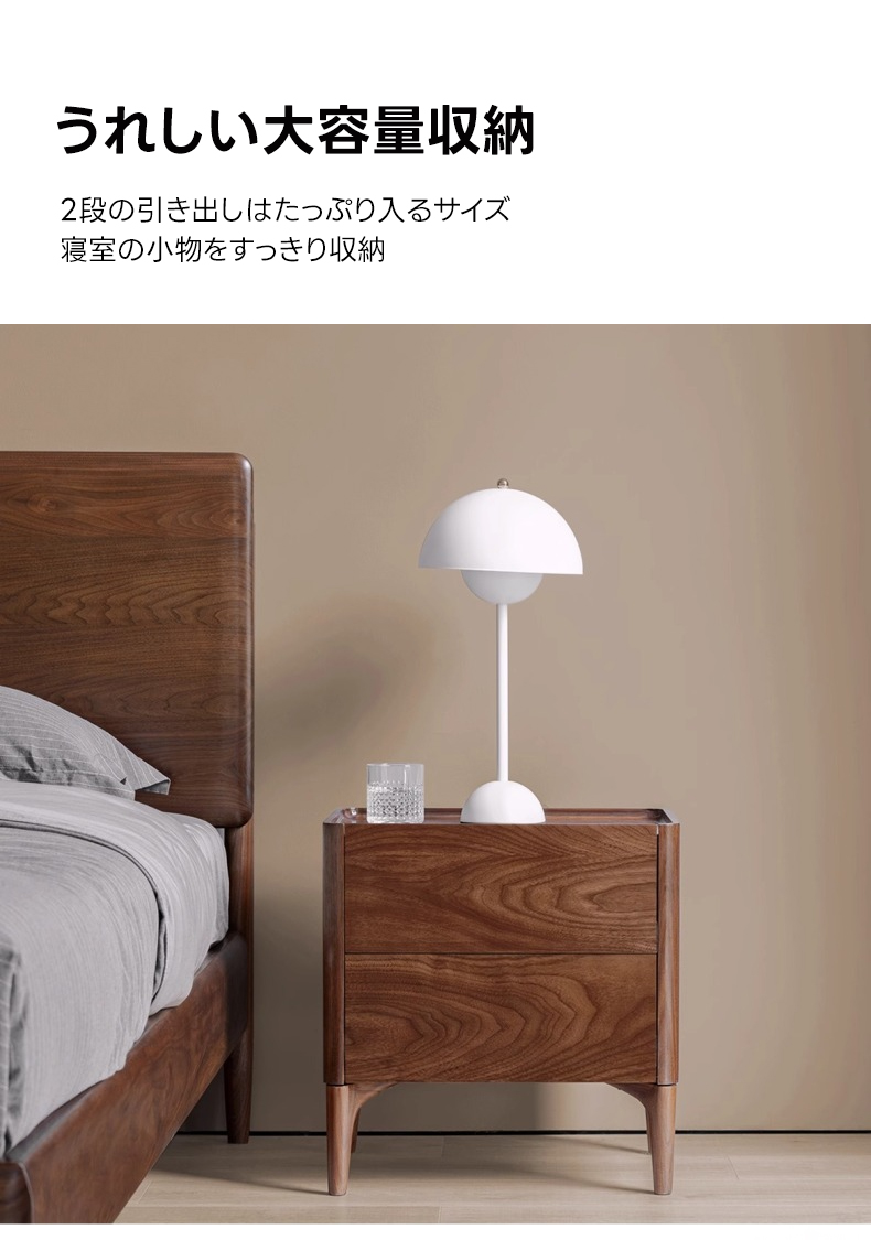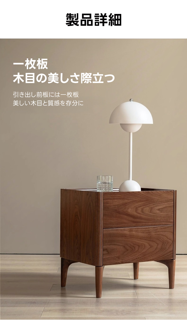 - 【高級感あふれる天然木ナイトテーブル】北米産FASグレードのブラックウォールナット材を使用し、ナチュラルで落ち着いたブラウンの色合いが寝室を上品に演出します。美しい木目と質感が特徴で、どんなインテリアにも調和します。
