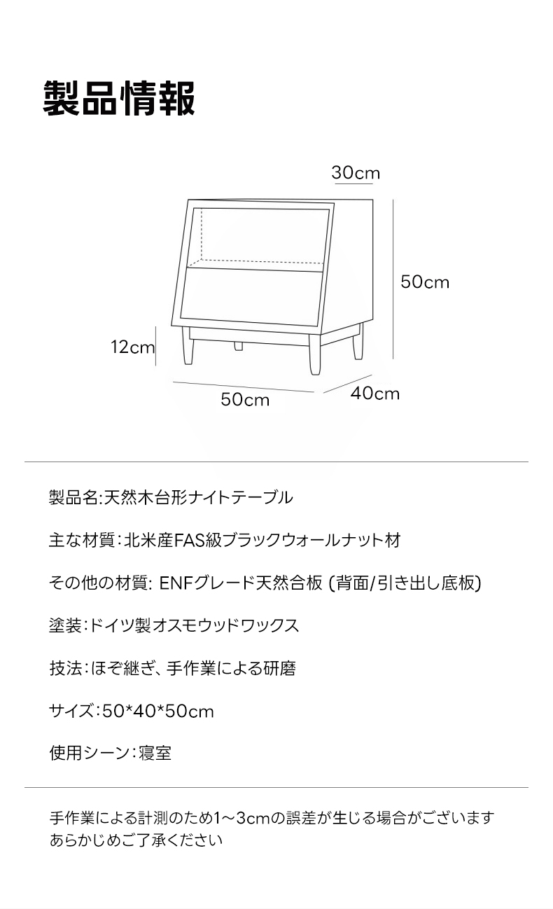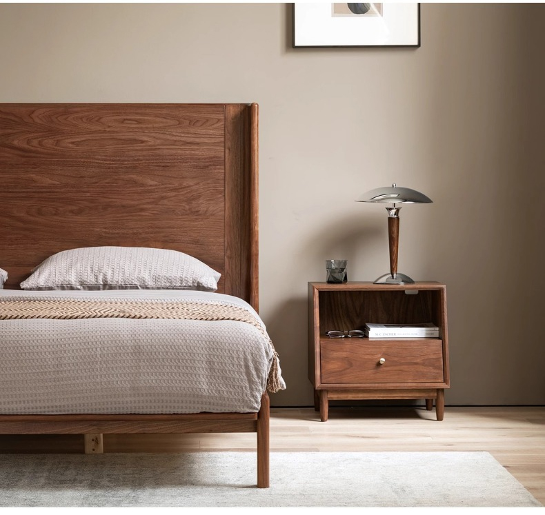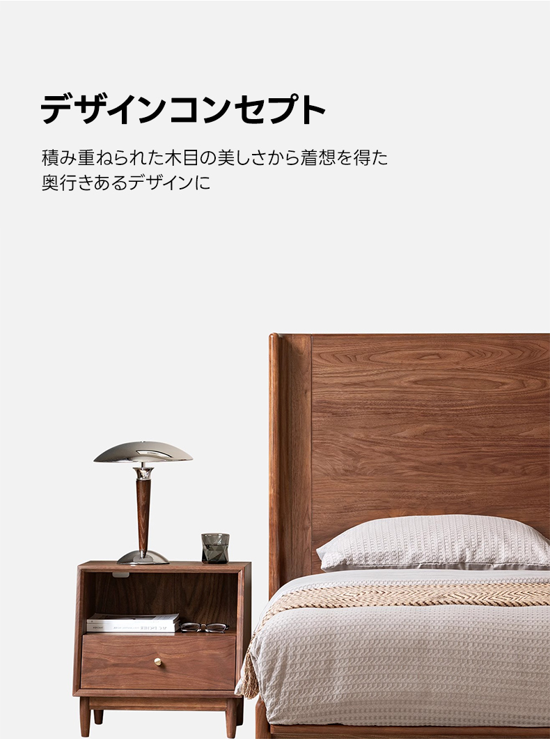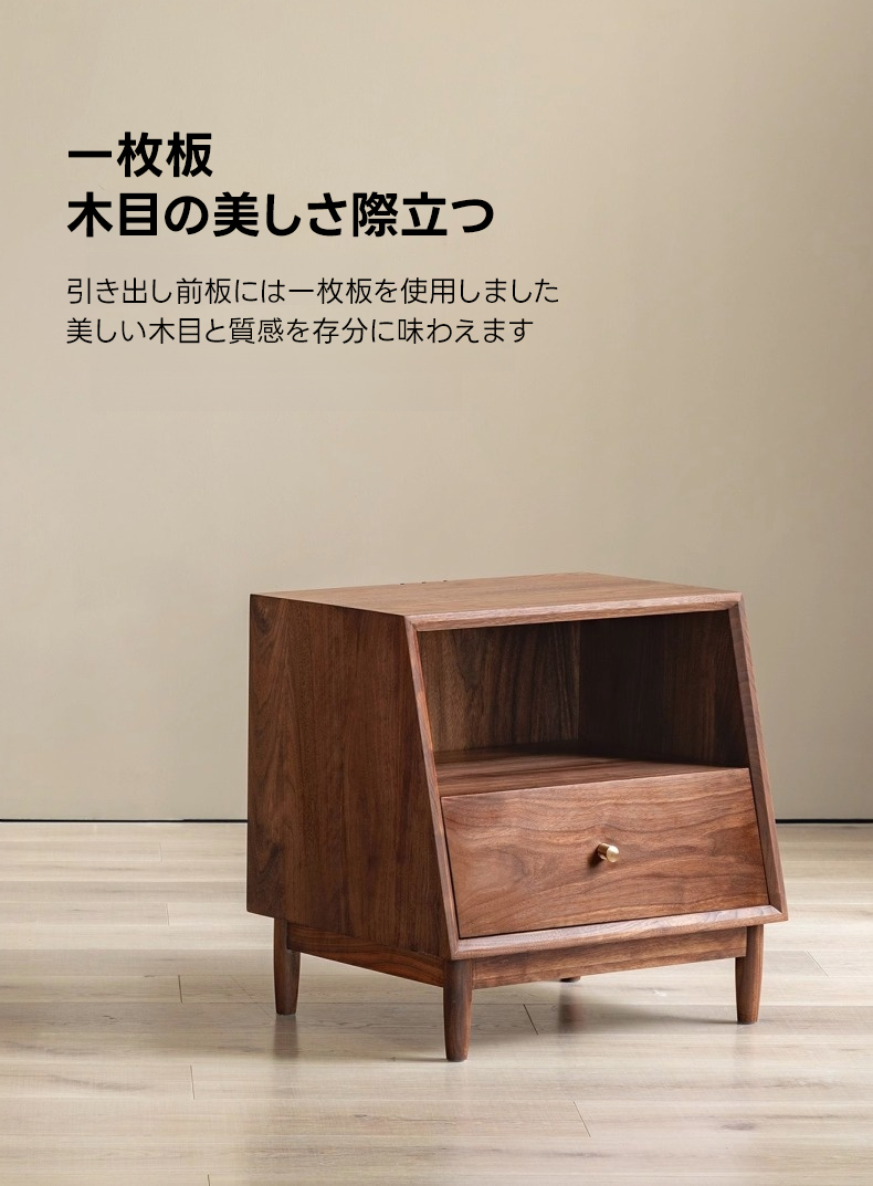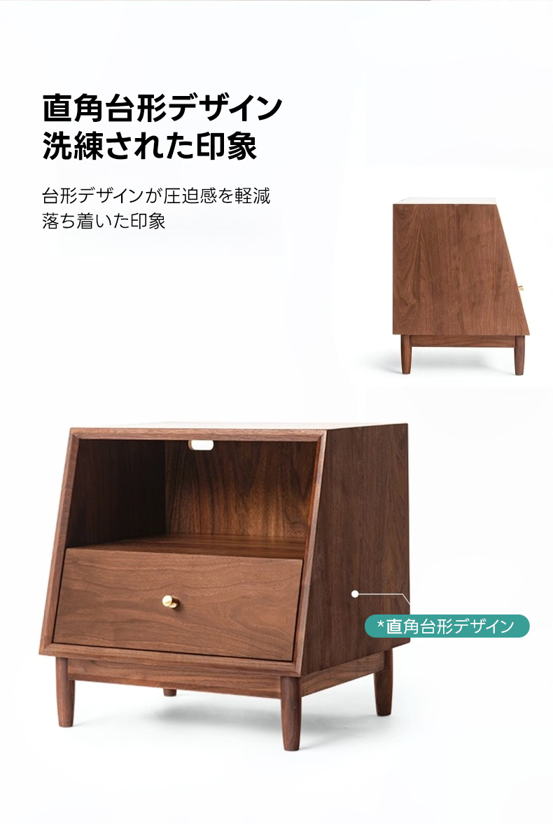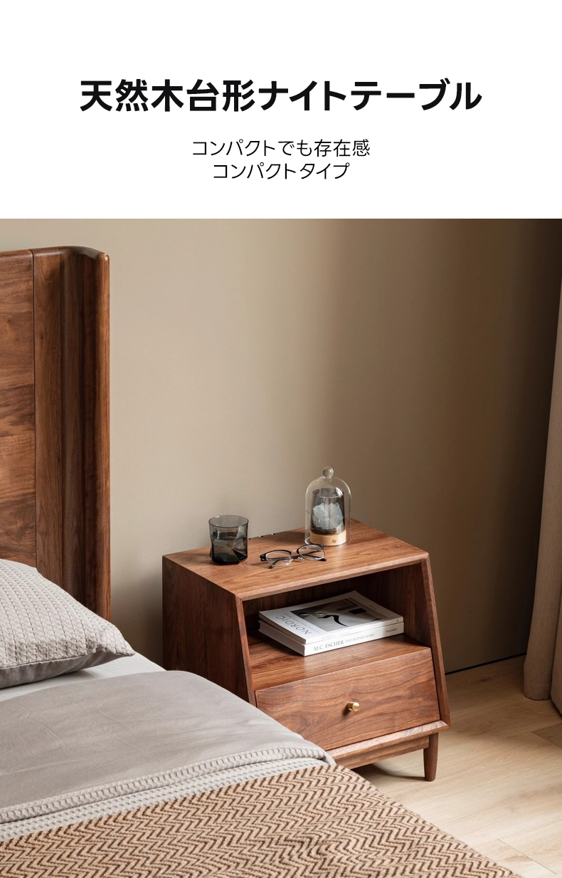 - 【高級感溢れるデザイン】天然木台形ナイトテーブルは、北米産FAS級ブラックウォールナット材を使用し、美しい木目とナチュラルなブラウンカラーで寝室に落ち着きを与えます。台形の形状が洗練された印象を演出し、圧迫感を軽減します。
