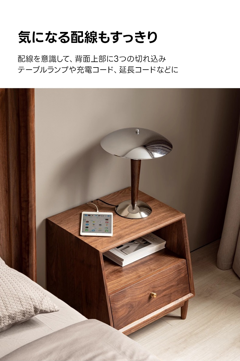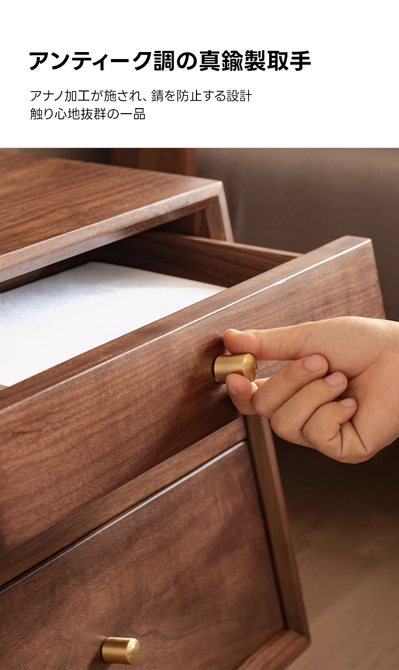 - 【快適な使用体験】スライドレールとオートクローズ機能を搭載し、スムーズで静かな開閉が可能です。背面には配線用の切れ込みがあり、テーブルランプや充電コードの整理が簡単です。アンティーク調の真鍮製取手で、錆を防ぐ加工が施されています。