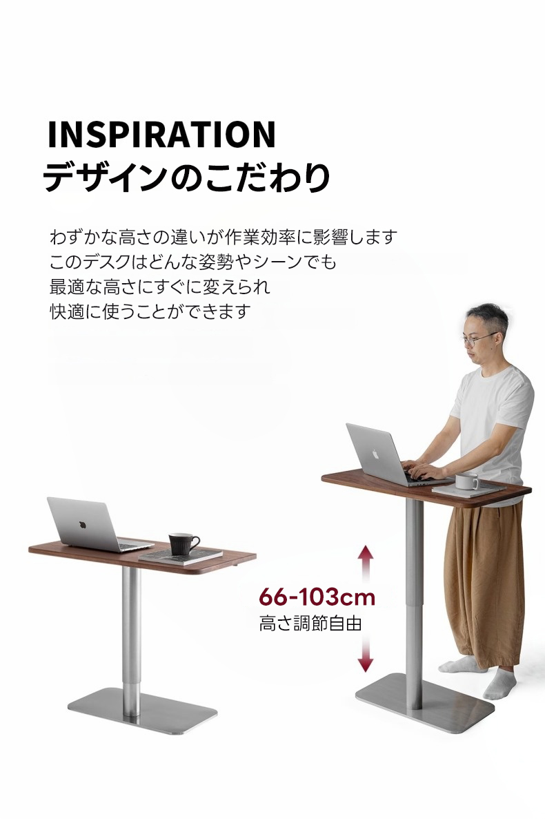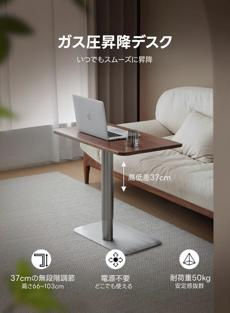 - 【ガス圧昇降機能で快適作業】:ガス圧昇降デスクは、66cmから103cmまでの高さ調整が可能で、座位でも立位でも快適に作業できます。電源不要のガス圧式なので、スムーズで静かな昇降が可能です。